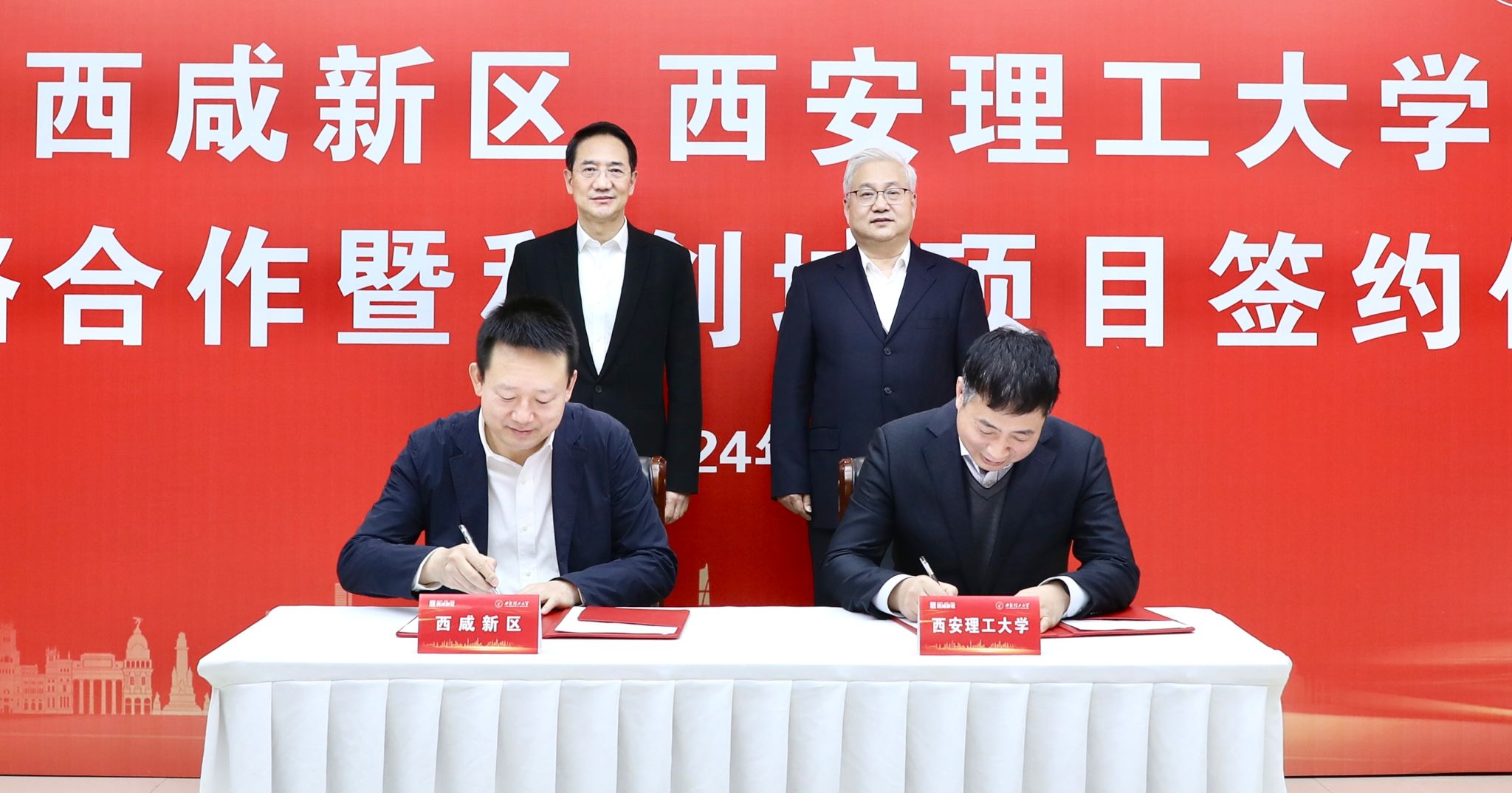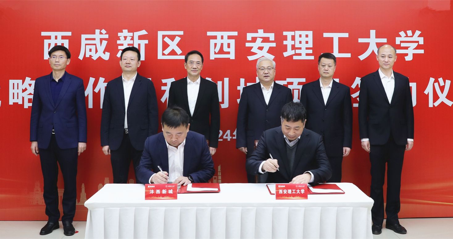 2月29日上午,我校与西咸新区战略合作协议签约仪式在西咸大厦举行。校党委书记李智军、校长刘云贺,西咸新区党工委书记杨仁华、管委会主任齐海兵出席签约仪式。校党委副书记马亮、副校长董小兵,沣西新城党委书记、管委会主任陈默,西咸新区管委会副主任杨胜良参加签约仪式。