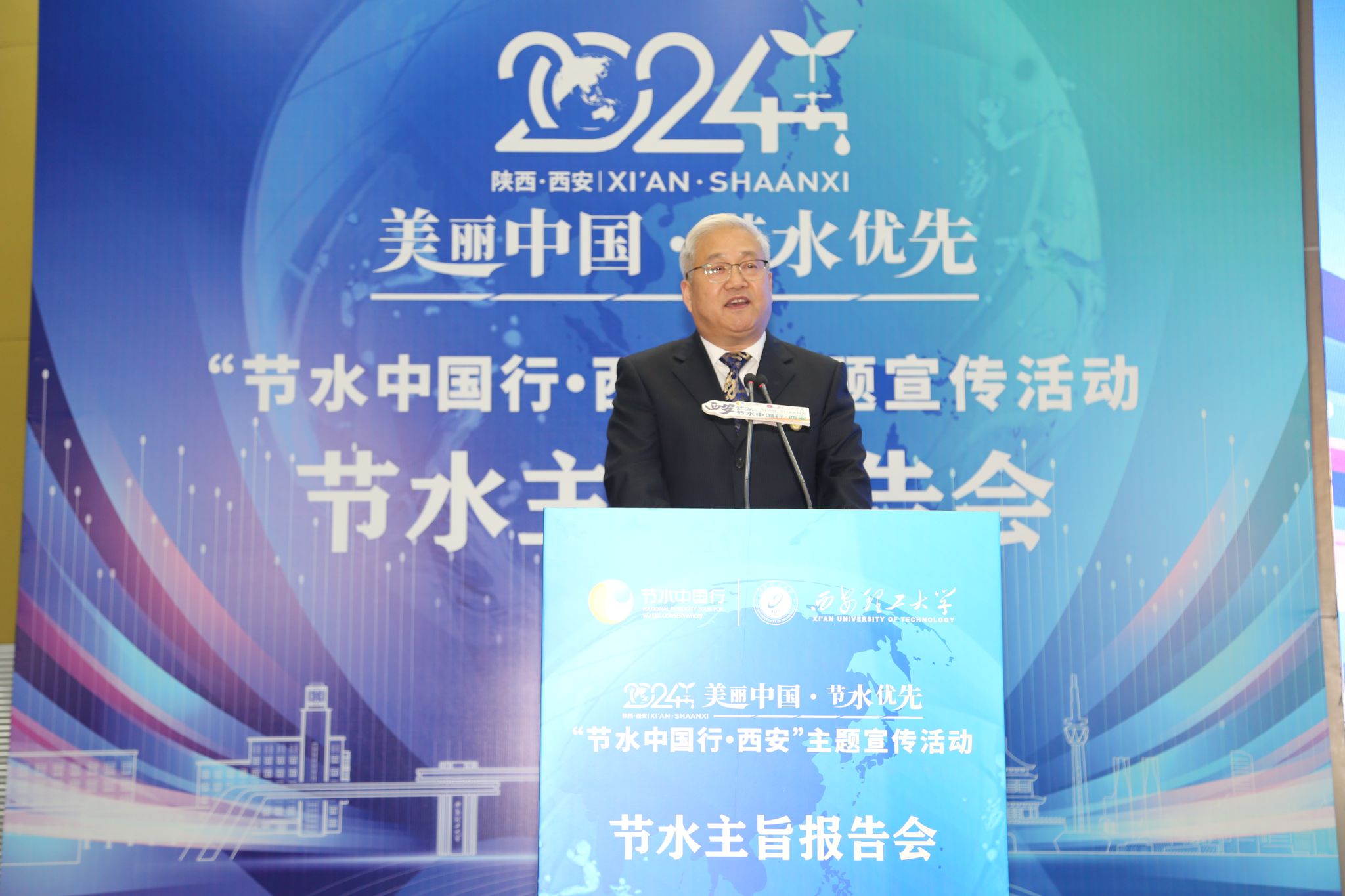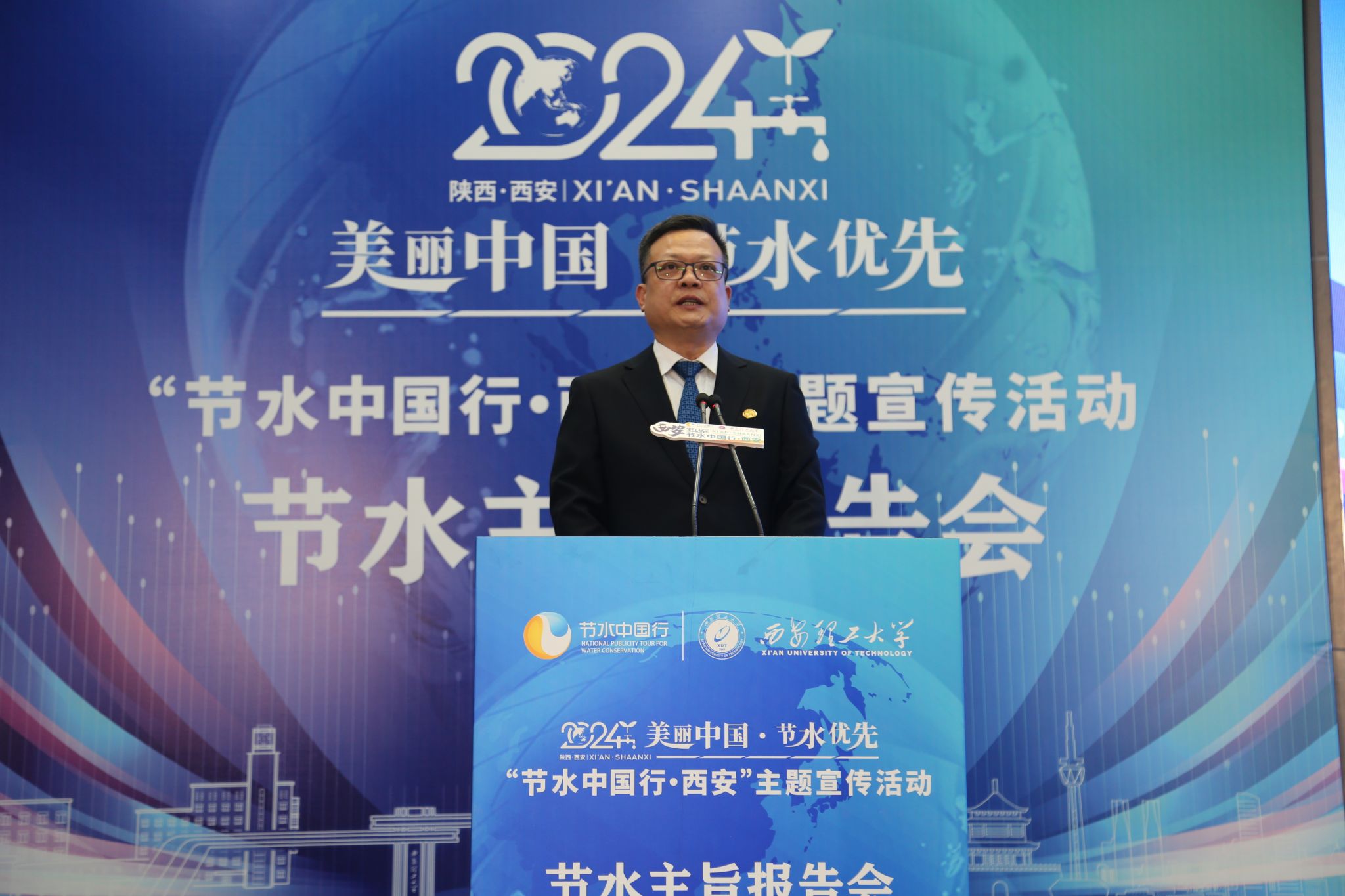 陕西省水利厅党组成员、副厅长左怀理作了《坚持节水优先 落实节约战略,推进陕西水资源集约节约高效利用》节水工作主旨报告,随后陕西水务发展集团、西安水务集团、大禹节水集团负责人也分别以《贯通水务产业全生命周期,全面助推节水型社会建设》《滴水必珍 量水而行 ——以全市水务“三个一”推动西安节水型城市建设》《科技赋能 改革创新---全面推动农业节水》做了节水主题报告。