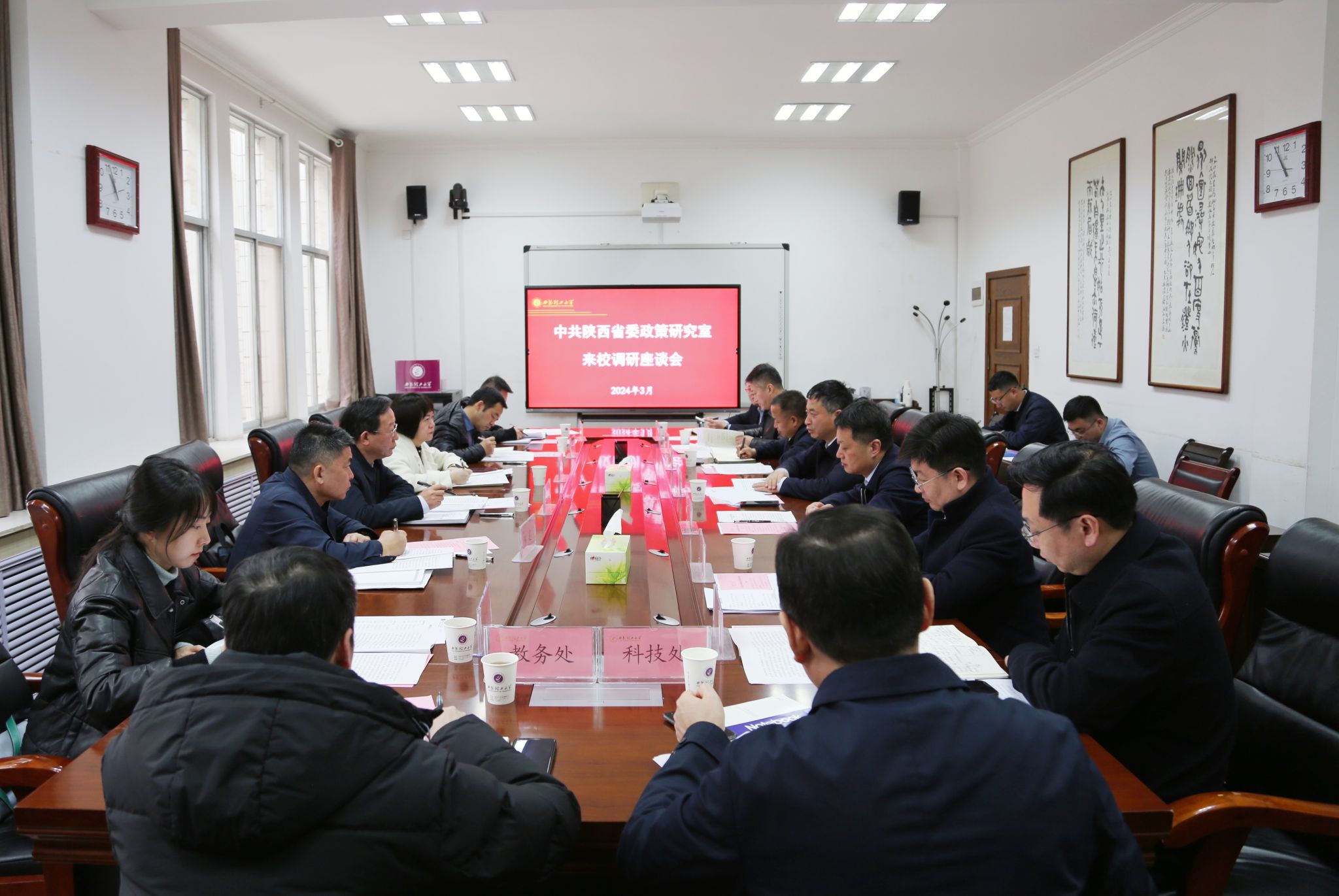 刘云贺代表学校对杨孝武一行表示欢迎,详细介绍了学校教育教学、科研成果转化、人才队伍建设、服务地方发展等工作开展情况和主要成绩,并就进一步统筹各方资源,深化校地校企合作,持续加强陕西高水平大学建设,深入推进陕西高等教育高质量发展提出工作意见和建议。