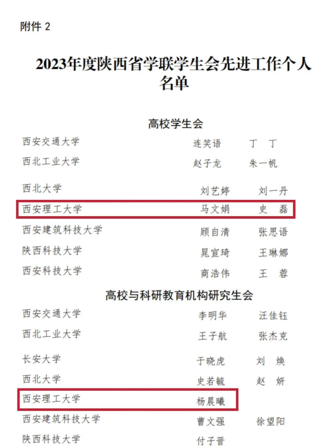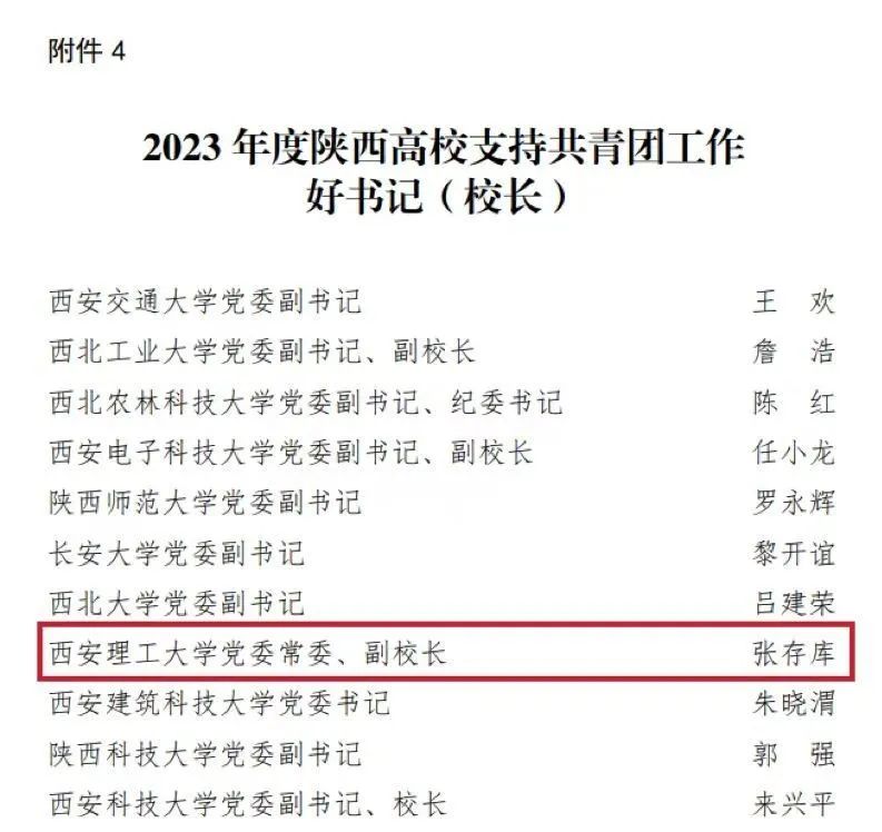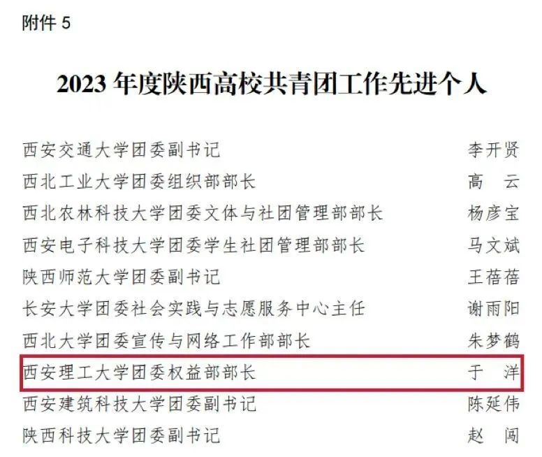 近日,共青团陕西省委、中共陕西省委教育工委联合印发《关于2023年度陕西高校共青团工作述职评议结果的通报》,我校团委荣获“2023年陕西高校共青团工作优秀单位”称号,校党委常委、副校长张存库获“2023年陕西高校支持共青团工作好书记(校长)”称号,校团委于洋获“2023年陕西高校共青团工作先进个人”称号。陕西省学生联合会印发《关于2023年度陕西学联学生会组织工作述职评议结果的通报》,我校学生会荣获“2023年度陕西省标兵学联学生会组织”,校学生会马文娟、史磊,校研会杨晨曦获“2023年度陕西省学联学生会先进工作个人”。