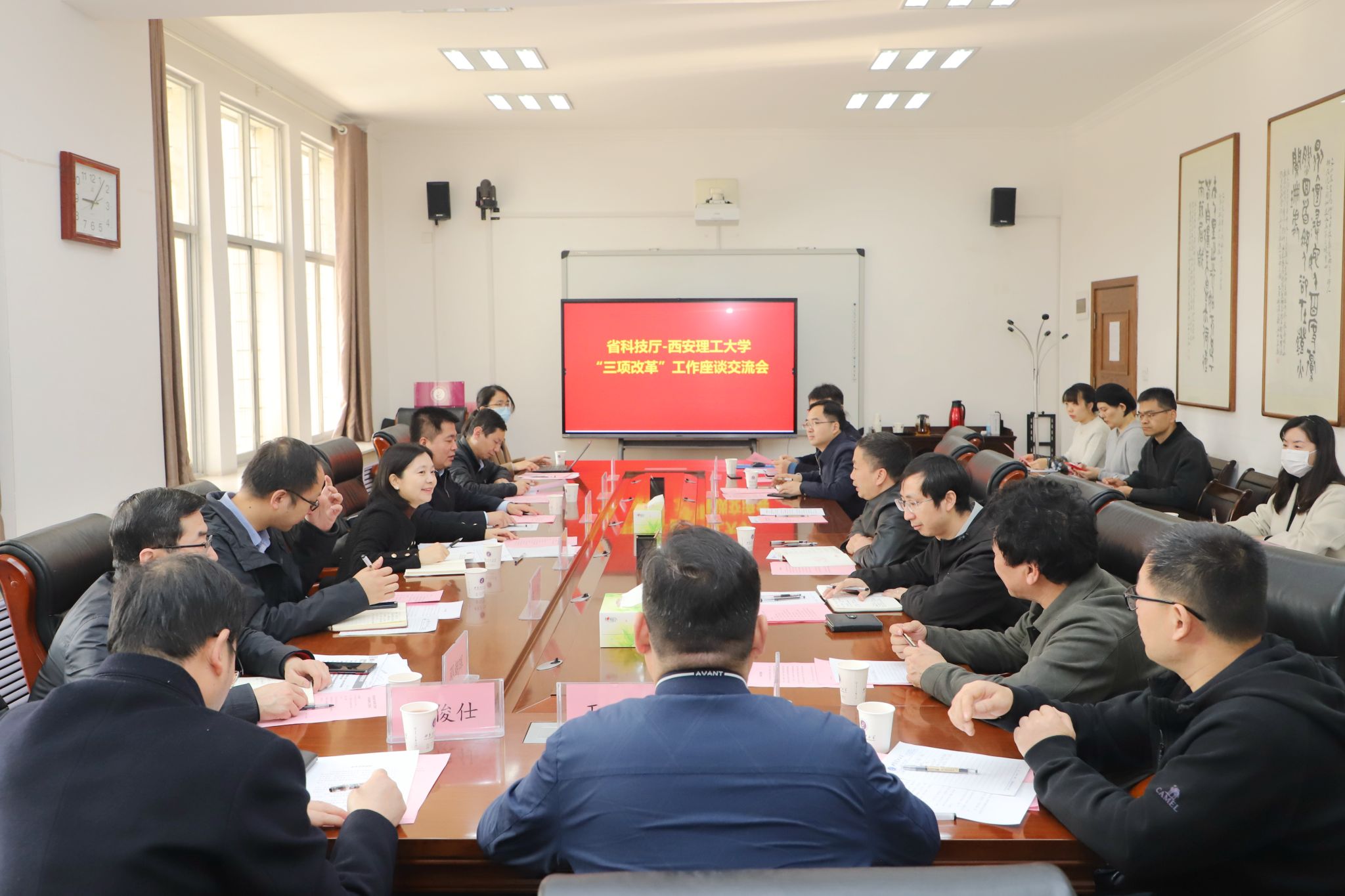 科技厅政策法规与创新体系建设处、西安交通大学、西北工业大学相关人员,我校材料科学与工程学院、自动化与信息工程学院、机械与精密仪器工程学院、科技处、财务处、人事处、资产处、资产公司等单位负责人参加座谈。