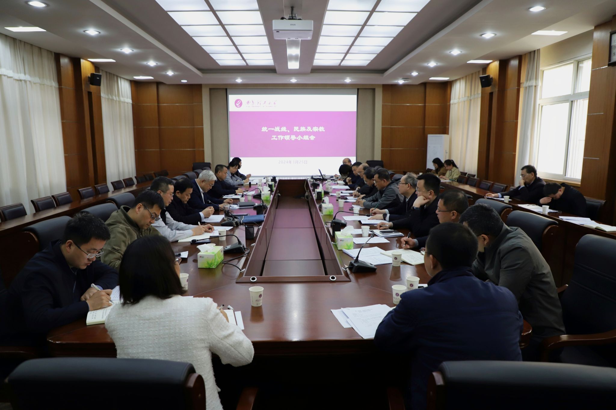 3月25日下午,学校在金花校区101会议室召开统一战线、民族及宗教工作领导小组会。校党委书记李智军出席并讲话,校长刘云贺参加会议,会议由省纪委监委驻校纪检监察组组长,校党委副书记、纪委书记李鹏主持。