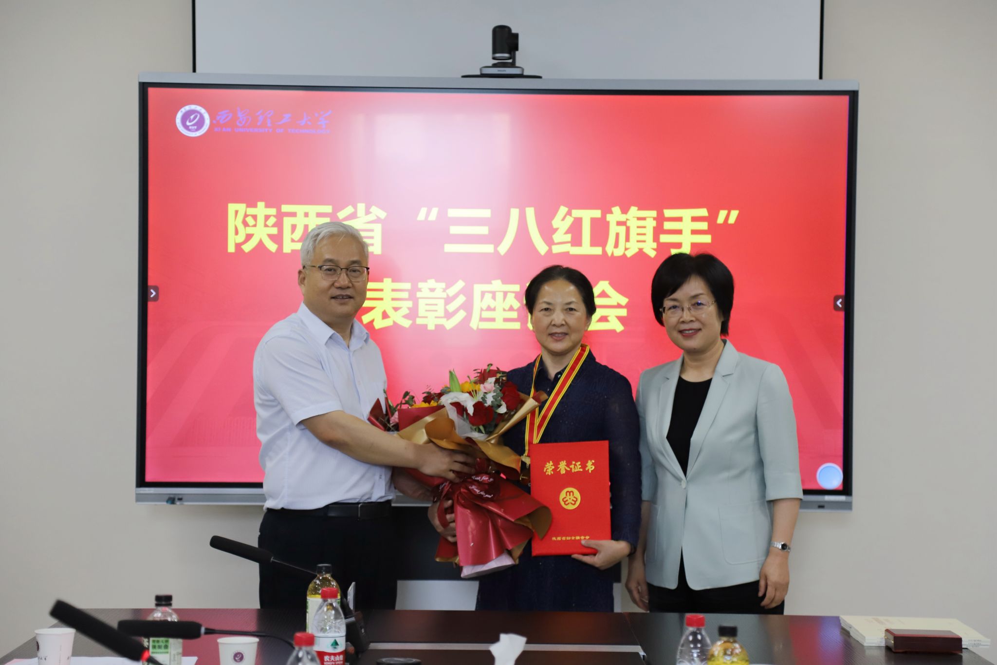 6月7日,学校举行陕西省“三八红旗手”先进表彰座谈会,陕西省妇女联合会党组书记、主席王玉娥,陕西省教育厅二级巡视员董侠,陕西省妇女联合会宣传部部长安婧、办公室副主任张奕帆一行来校,为荣获陕西省“三八红旗手”荣誉称号的黄颖为教授颁奖授牌。我校党委书记李智军出席座谈会,会议由校党委副书记马亮主持。
