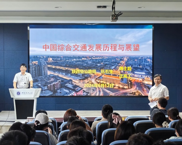 伍石生为我校师生做了题为“中国综合交通发展历程与展望”的学术报告,分享了我国及陕西省综合交通运输的变革、发展历程与成就,剖析了当前我国综合交通运输行业建设、运营等方面存在的问题,并进一步提出了综合交通运输的发展展望和思考。报告中,还特别对智慧交通的发展提出了独到的见解。互动环节,伍石生同会场师生进行了深入讨论、气氛热烈。