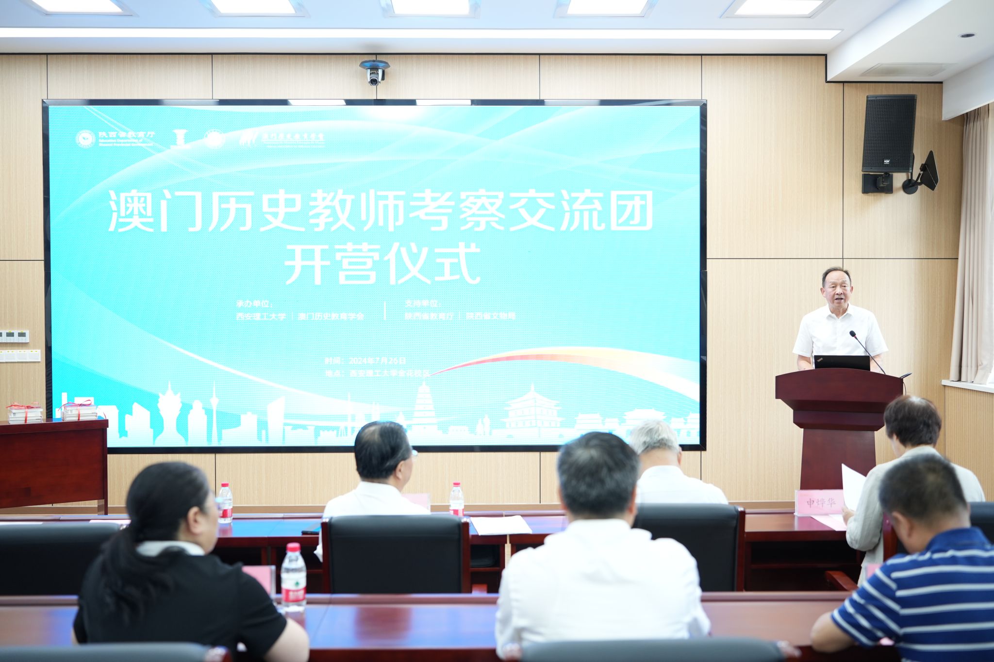 在省教育厅、省文物局的支持下,7月26日,由我校和澳门历史教育学会联合承办的澳门历史教师国情考察团开营仪式在我校金花校区举行。省委教育工委副书记王海波、省文物局副局长钱继奎、澳门历史教育学会副理事长杜志豪、我校党委书记李智军出席并致辞。澳门中联办教青部调研员王婷婷、省文物局文物交流合作处处长张晓英、省教育厅港澳台事务办公室副主任张亮、省文物交流协会秘书长刘芃,以及来自澳门10余所中学近30名历史教师参会。会议由副校长申烨华主持。