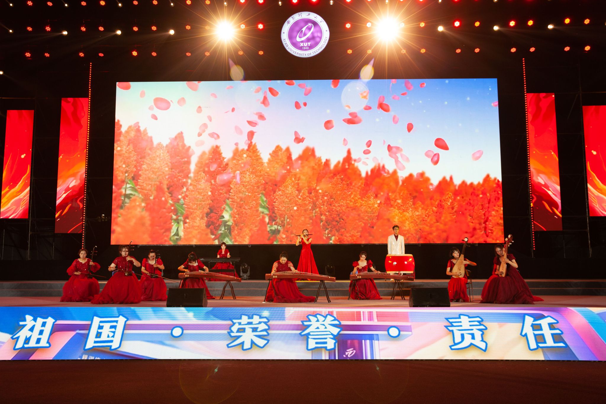 整场晚会共分为三个篇章:《青春遇见·薪火相传》《青春有志·同心逐梦》和《青春奋进·梦想起航》,分别展现了2024级新生在大学校园初遇时的梦想与希望、全校师生从辉煌校史中汲取的奋进力量,以及学子们立志以奋斗青春书写人生华章的精神风貌。