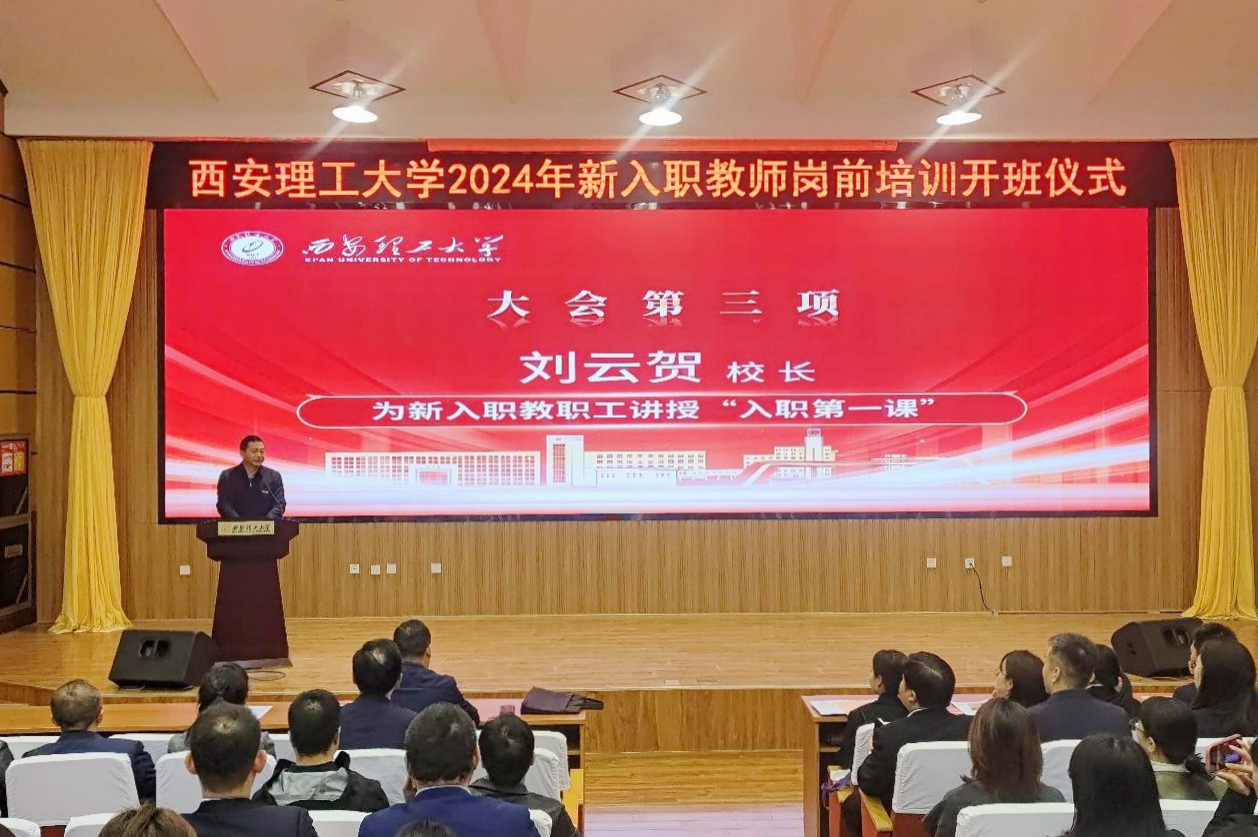 10月21日上午,我校在金花校区图书馆报告厅举行2024年新入职教师岗前培训开班仪式。校长刘云贺出席仪式,并为新入职教职工讲授“入职第一课”。开班仪式由人事处常务副处长兼高层次人才办公室主任刘敏辉主持。