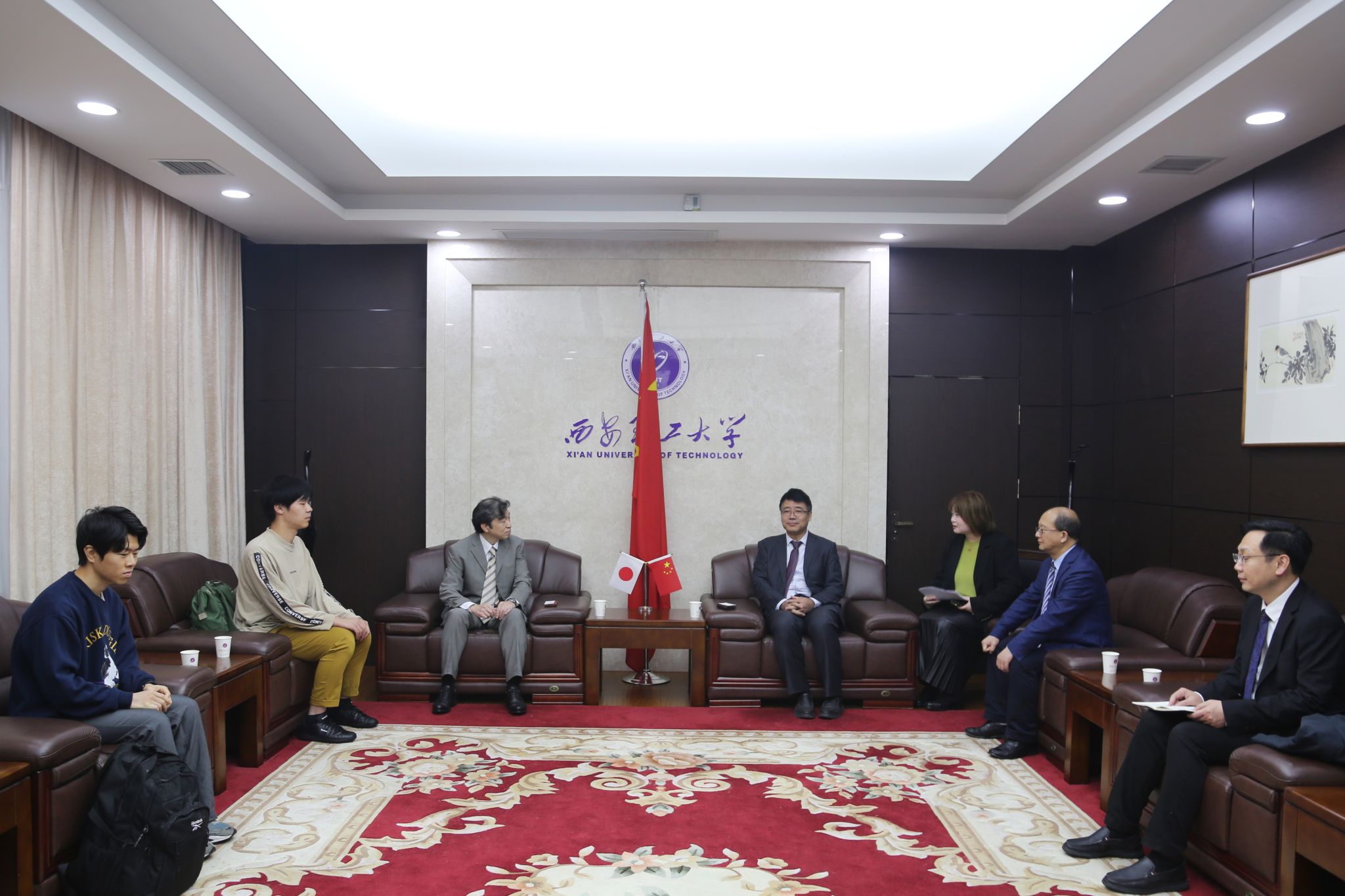10月31日,日本福井大学樱井明彦教授带领10名研究生抵达西安,参加我校第19届研究生学术年会。我校副校长黑新宏在第一接待室会见师生代表团一行。