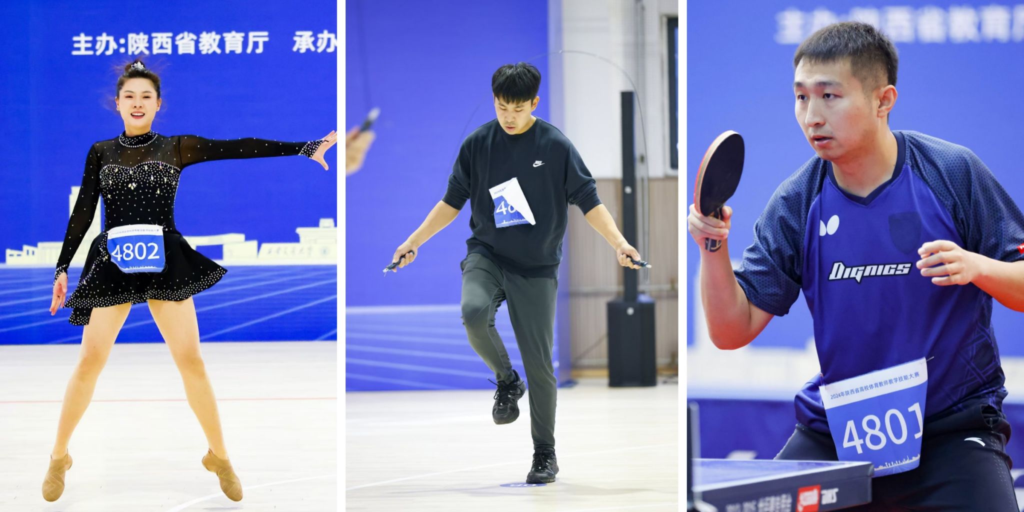 近日,陕西省普通高校体育教师教学技能大赛在西安交通大学举行,我校派出五位教师参赛,均展示出扎实的教学能力和良好的专业技能水平。 最终,高天悦(健美操) 、周蔚豪(足球)两位教师获得大赛一等奖;林华(足球)、陈栋(乒乓球)两位教师获得大赛三等奖,创造了我校参加全省高校体育教师教学技能大赛历年来最好成绩。