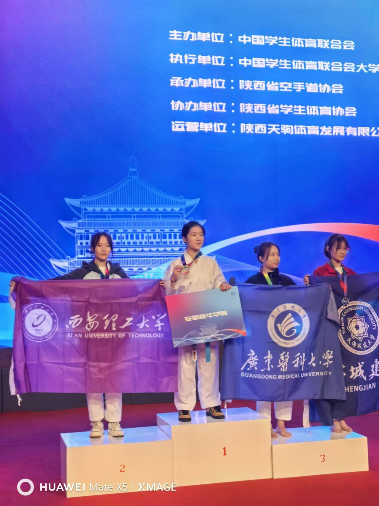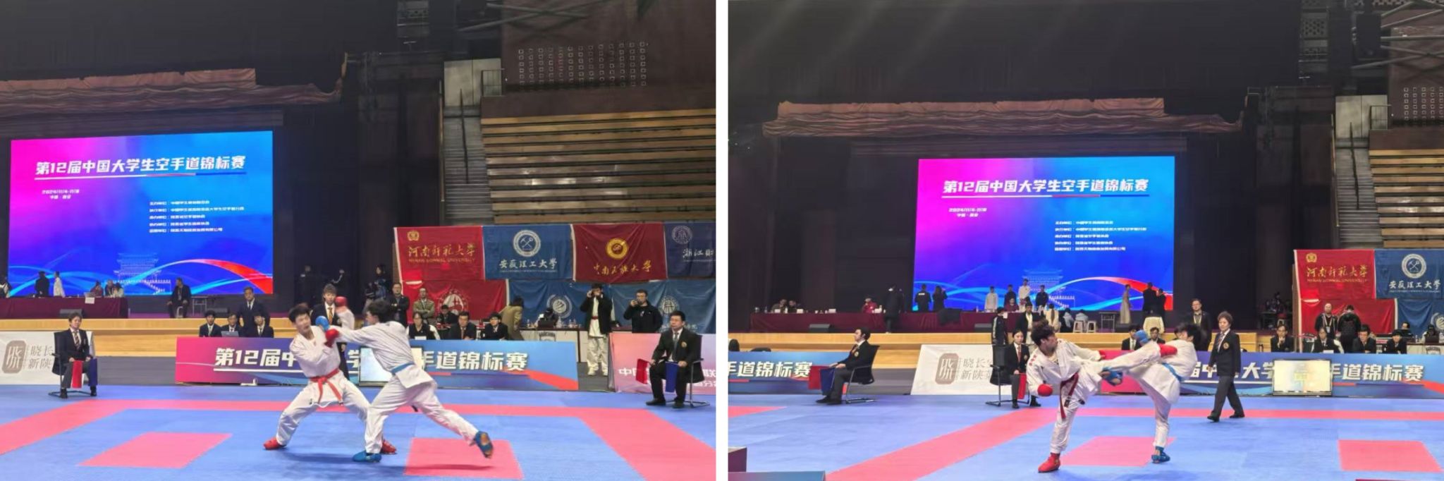 11月6日至8日,第12届中国大学生空手道锦标赛在西安外国语大学举行。我校空手道运动队在体育教学部张龙、崔振飞、郭媛老师的指导下,发扬顽强拼搏精神,取得3银、1铜的优异成绩。其中,水利水电学院叶南华同学、艺术与设计学院张俊豪同学分别获得男子甲组-55公斤级和男子甲组-64公斤级银牌;经济与管理学院任忆文同学获得女子甲组-56公斤级银牌;理学院陆利淇同学获得女子甲组-47公斤级铜牌。此外,我校男队还获得组手项目男子甲组第五名。