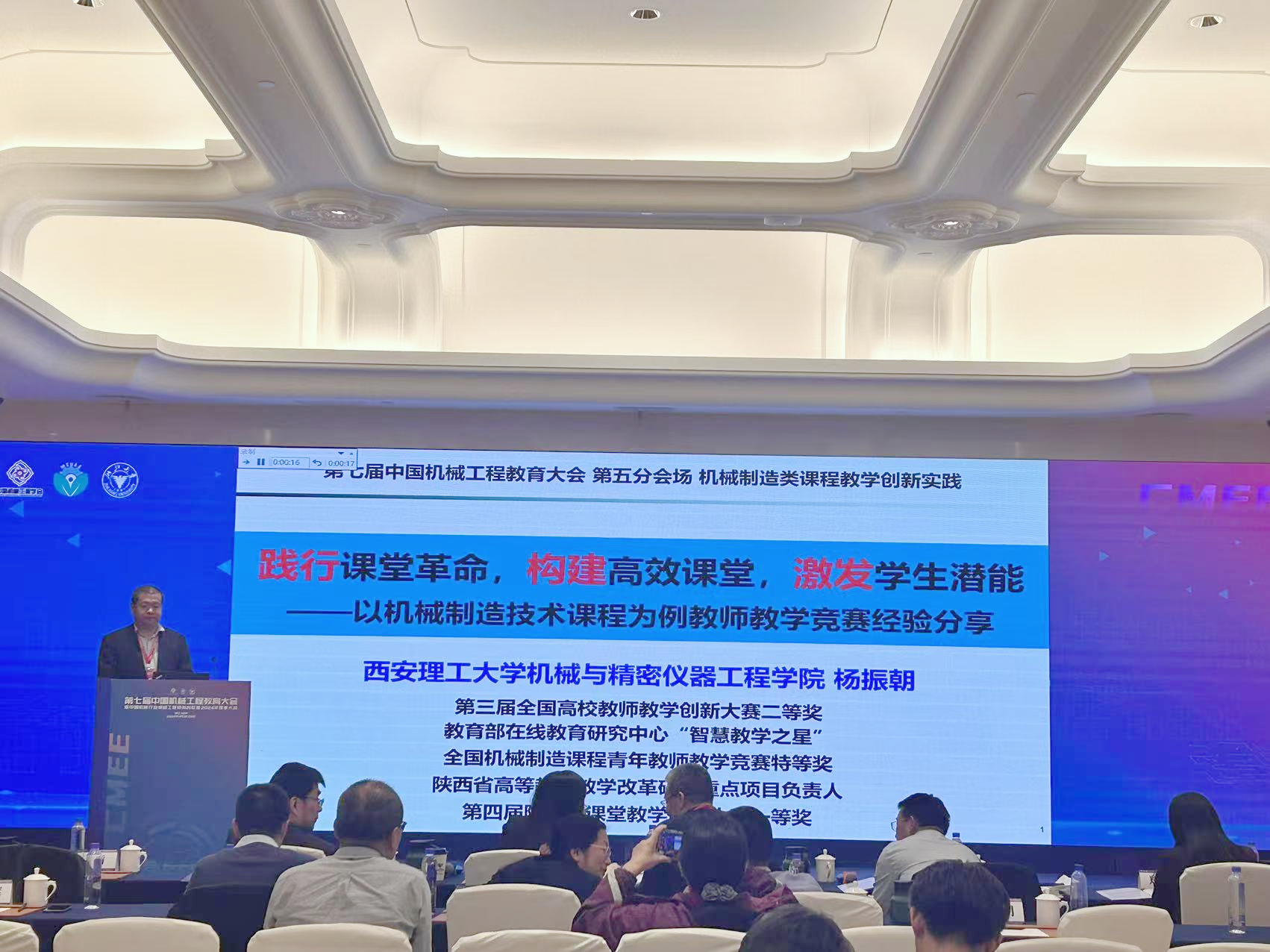 我校机械与精密仪器工程学院教师杨振朝联合西北机器有限公司申报的《产教融合背景下机械制造技术课程“铸魂强能”教学创新与实践》获本科生组课程类全国总决赛二等奖。杨振朝应邀作了题为《践行课堂革命,构建高效课堂,激发学生潜能—以机械制造技术课程为例教师教学竞赛经验分享》的报告。