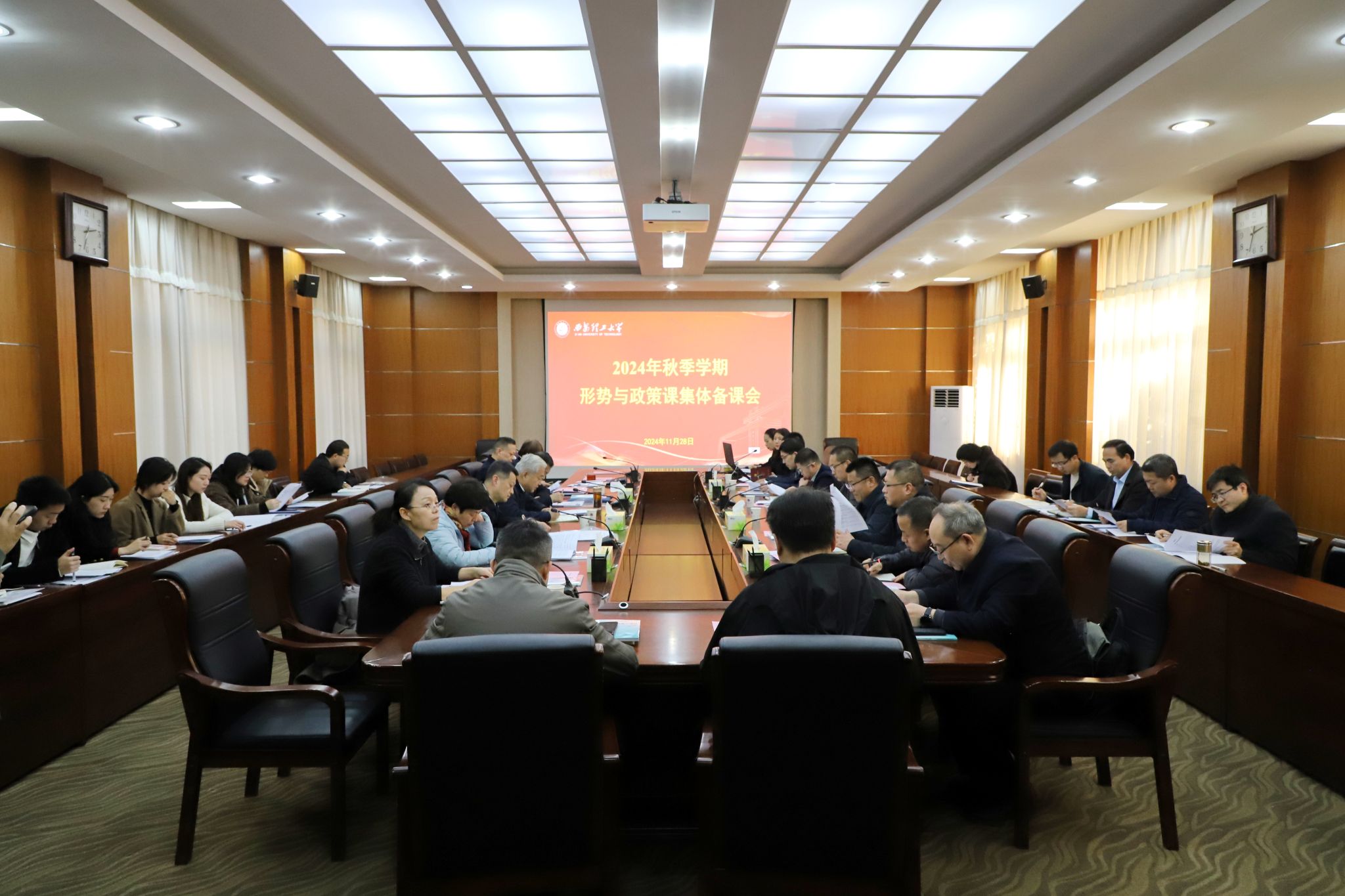 11月28日下午,我校在金花校区101会议室召开2024年秋季学期形势与政策课集体备课会。校党委书记李智军出席会议并讲话。