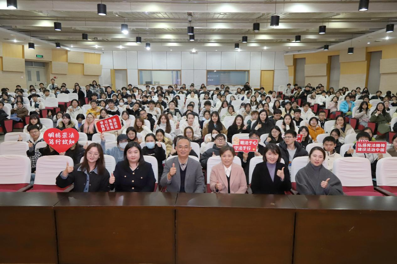 为深入学习宣传贯彻习近平法治思想,积极营造大学生尊法、学法、守法、用法的良好氛围,大力弘扬宪法精神,12月2日,taptap体育彩票法治宣传教育活动启动仪式暨普法教育讲座在曲江校区逸夫科技馆报告厅举行,讲座邀请知名法律专家王浩公主讲。人文与外国语学院正处级辅导员马卫华主持讲座。