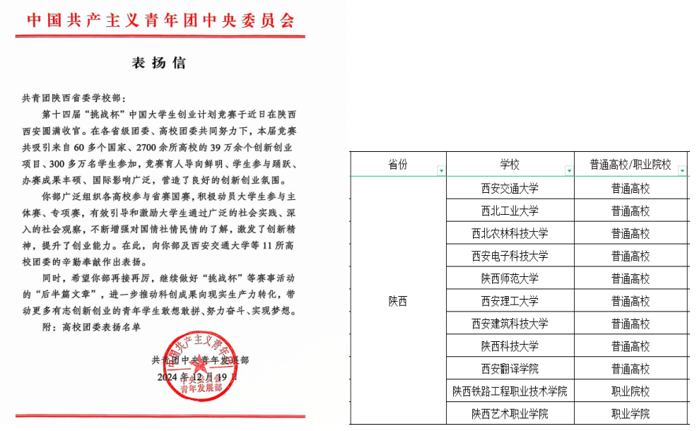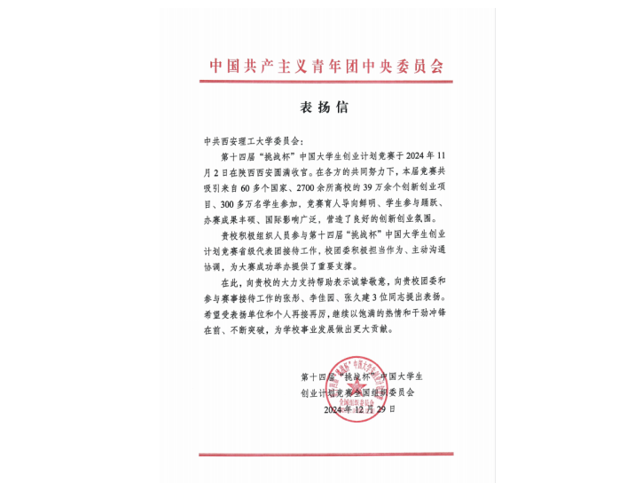 近日,taptap体育彩票先后收到共青团中央和第十四届“挑战杯”中国大学生创业计划竞赛主委会发来的表扬信,对我校在第十四届“挑战杯”中国大学生创业计划竞赛中高度重视、积极动员、有效引导、不断增强对国情社情民情的了解,激发了创新精神,提升了创业能力,起到好的示范引领作用提出表扬,并对我校积极组织人员参与第十四届“挑战杯”中国大学生创业计划竞赛省级代表团接待工作,校团委积极担当作为、主动沟通协调,为大赛成功举办提供了重要支撑表示感谢。