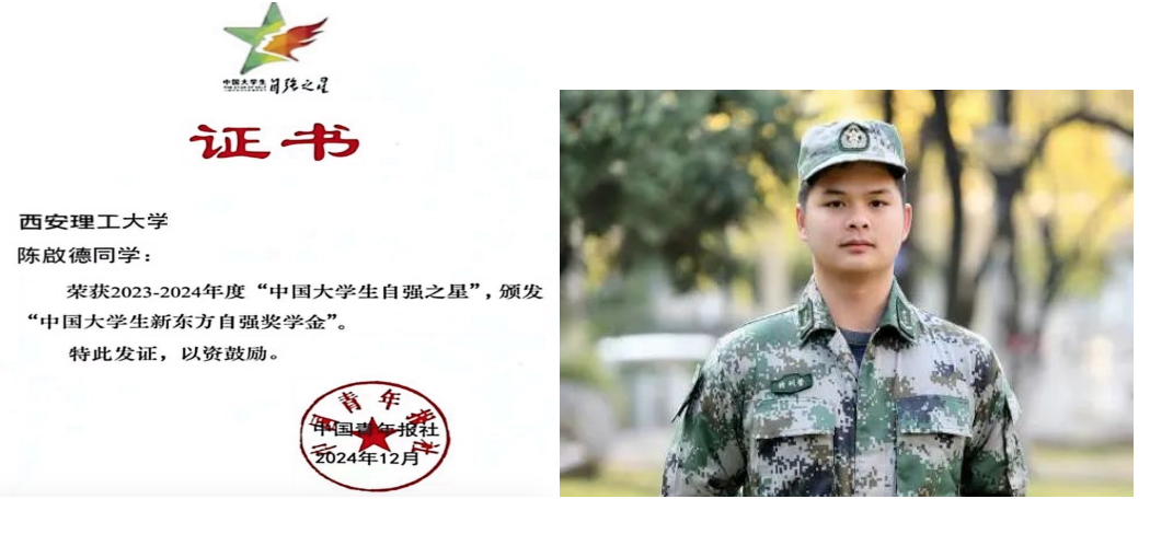 近日,由共青团中央、全国学联指导,团中央基层建设部、中国青年报社主办的2023-2024年度“中国大学生自强之星”奖学金推报活动评选结果揭晓。经学校推荐、省级初选、全国评审等环节,我校机械与精密仪器工程学院2023级机械工程专业硕士研究生陈啟德获评2023-2024年度“中国大学生自强之星”。