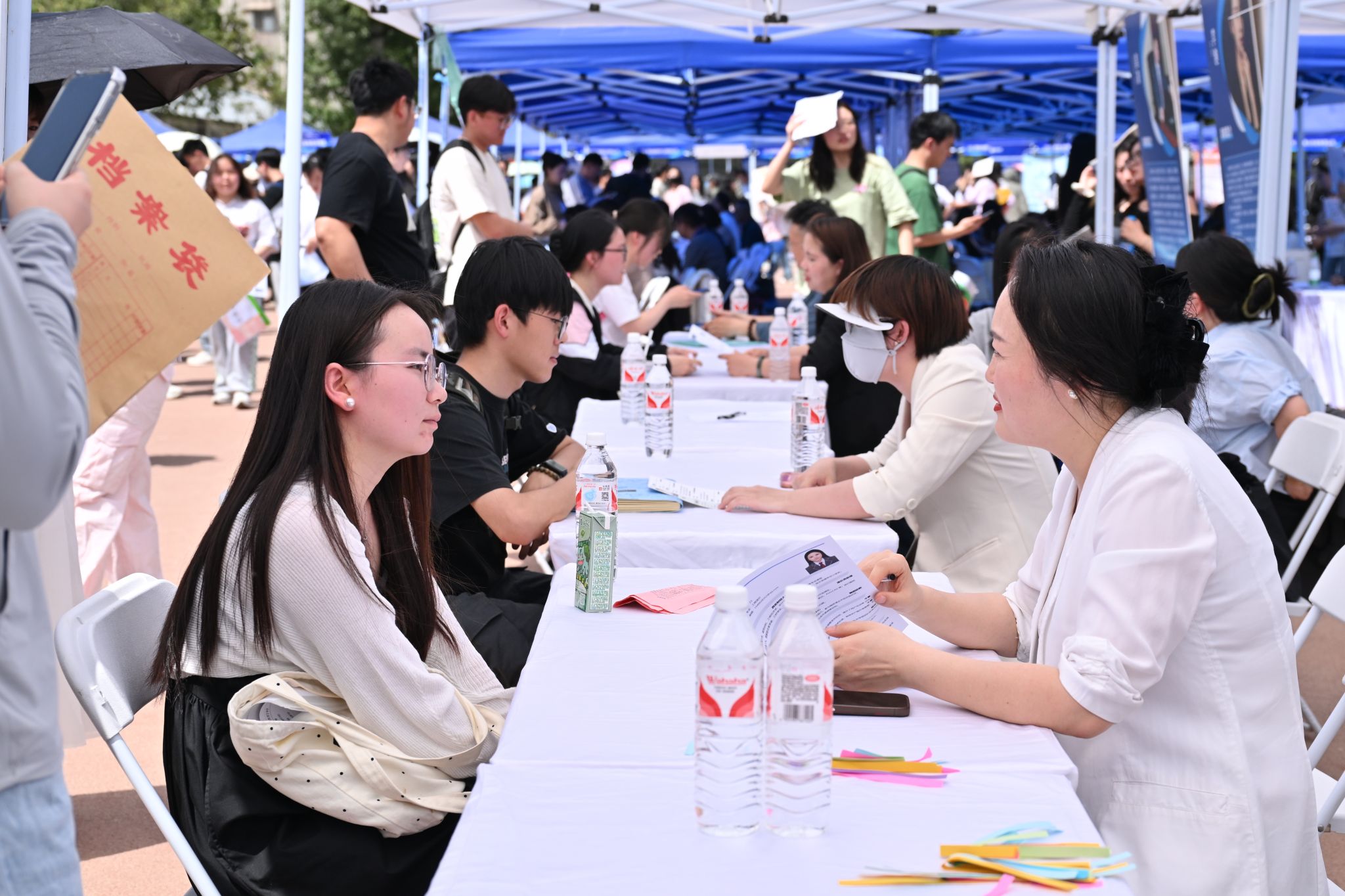 招聘会现场创新推出三大特色服务专区,职梦启航站、智能数字化专区、综合服务专区共同为求职者赋能。职梦启航站提供政策咨询、职业测评、简历优化、模拟面试等互动服务,帮助求职者提升求职技能;智能数字化专区引入AI简历诊断、大数据智能匹配等技术,实现“一键投递、人岗精准对接”;综合服务专区为求职者提供引导答疑等服务。