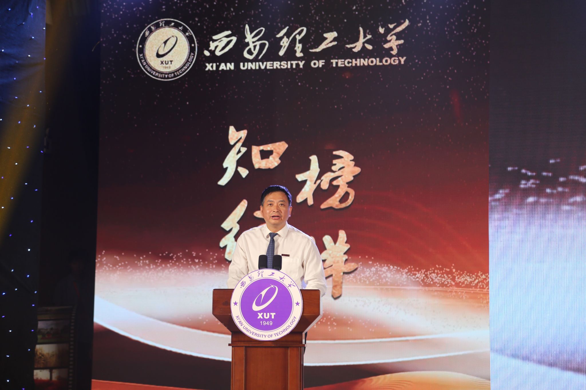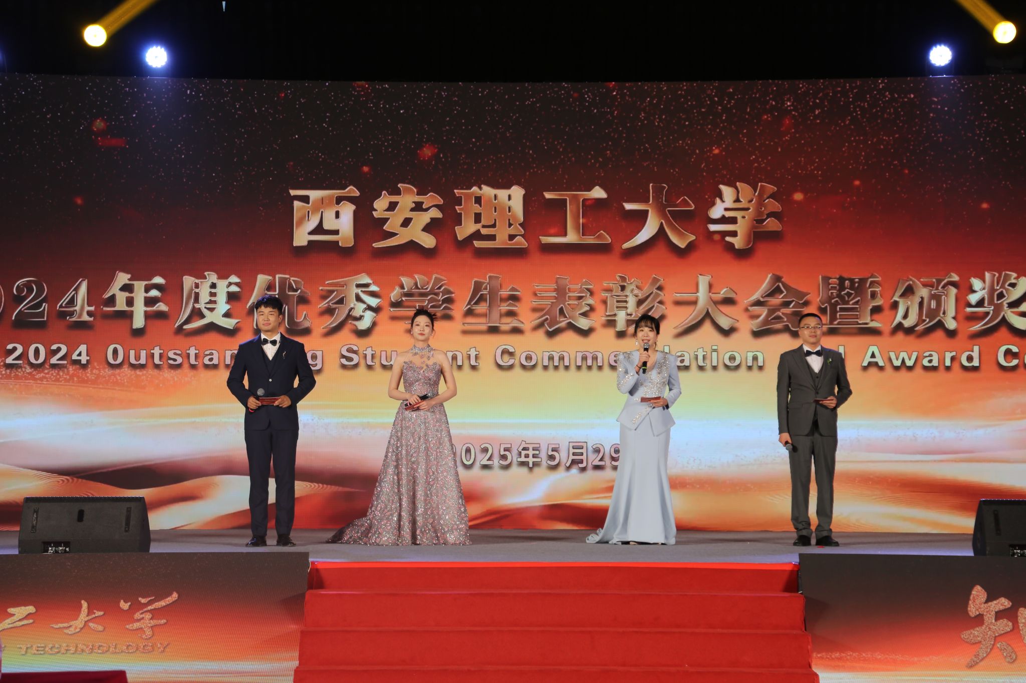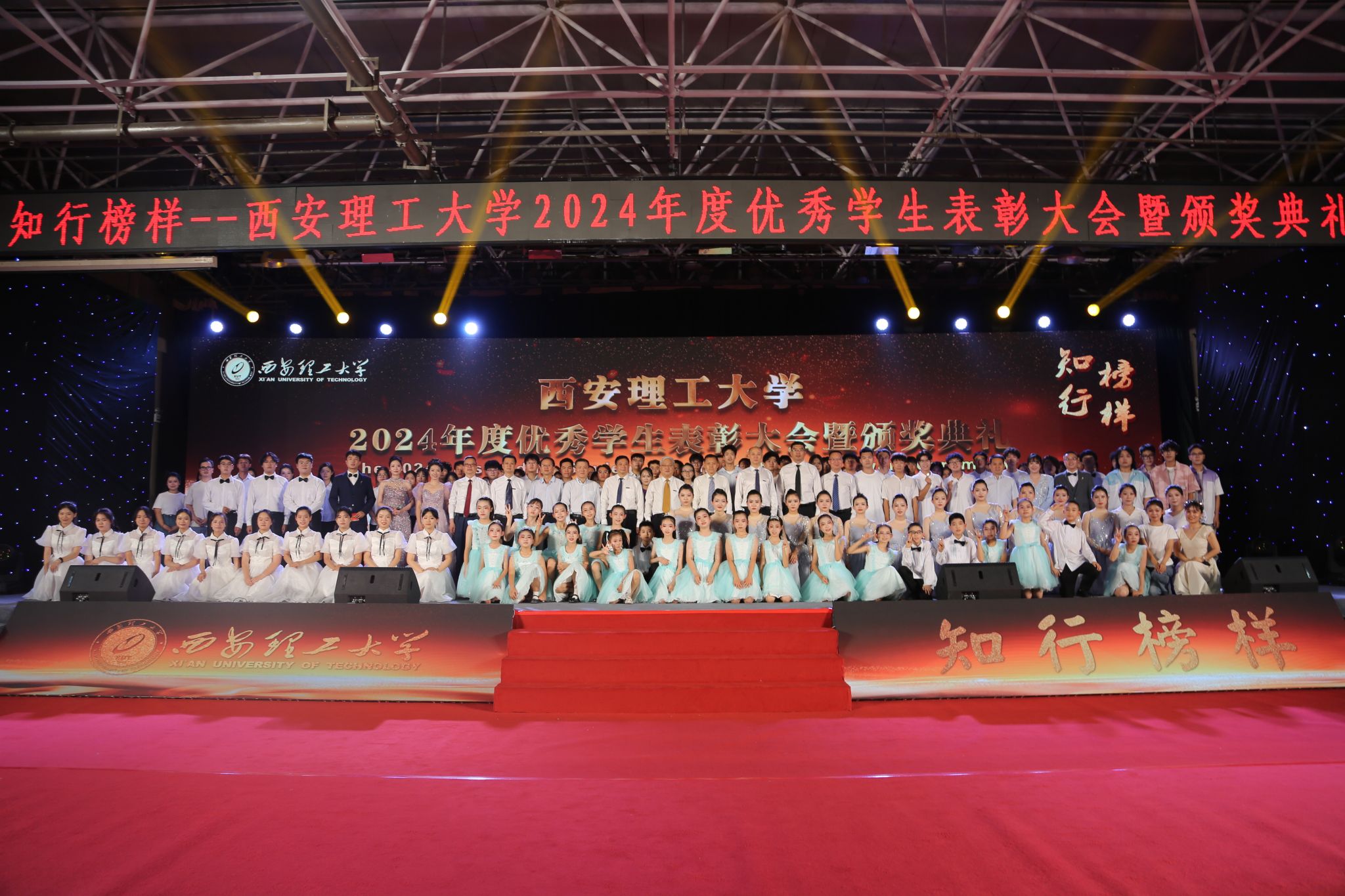 5月29日晚,我校在曲江校区大学生活动中心举行“知行榜样”2024年度优秀学生表彰大会暨颁奖典礼。陕西省学生资助事务中心主任姬建鹏,吴江经济技术开发区党工委委员、管委会副主任查旭东,校党委书记李智军,校长刘云贺,省纪委监委驻校纪检组组长、党委副书记、纪委书记李鹏,党委副书记马亮、张存库,副校长董小兵、张晓晖、高勇出席表彰大会并为获奖集体和个人颁奖。