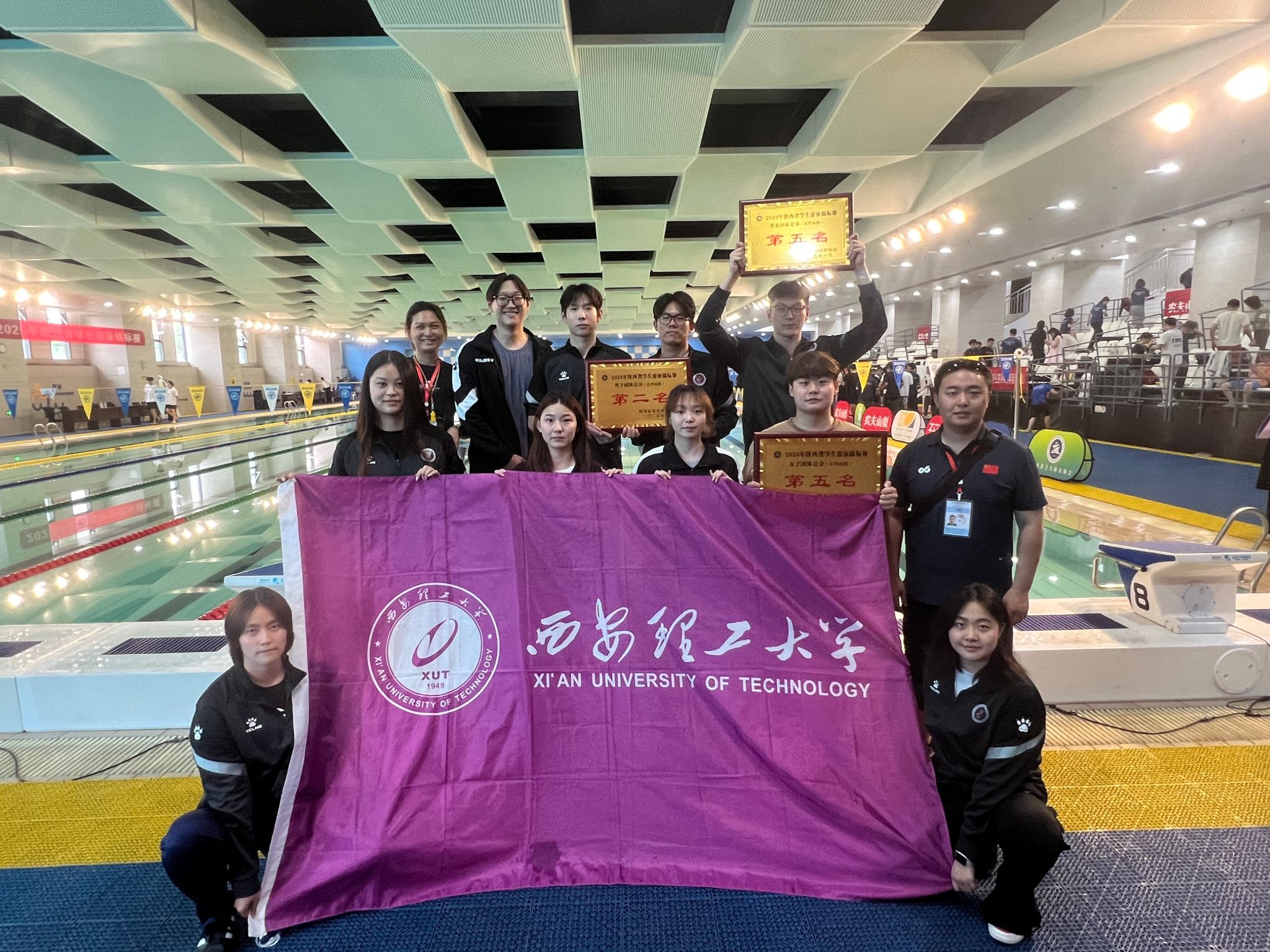 我校游泳队在体育教学部黎明、侯振东老师训练指导下,不畏强手、勇敢拼搏,夺得3枚金牌、6枚银牌、7枚铜牌及8项前八名,并获大学男子丙组团体第二名,大学女子团体第五名和大学丙组团体第五名的优异成绩,为我校赢得了荣誉。其中,经济与管理学院营销231班纪学帅同学获大学男子丙组50米仰泳和100米仰泳2枚金牌,经济与管理学院营销231班孟紫蕊同学获大学女子丙组50米蛙泳金牌。