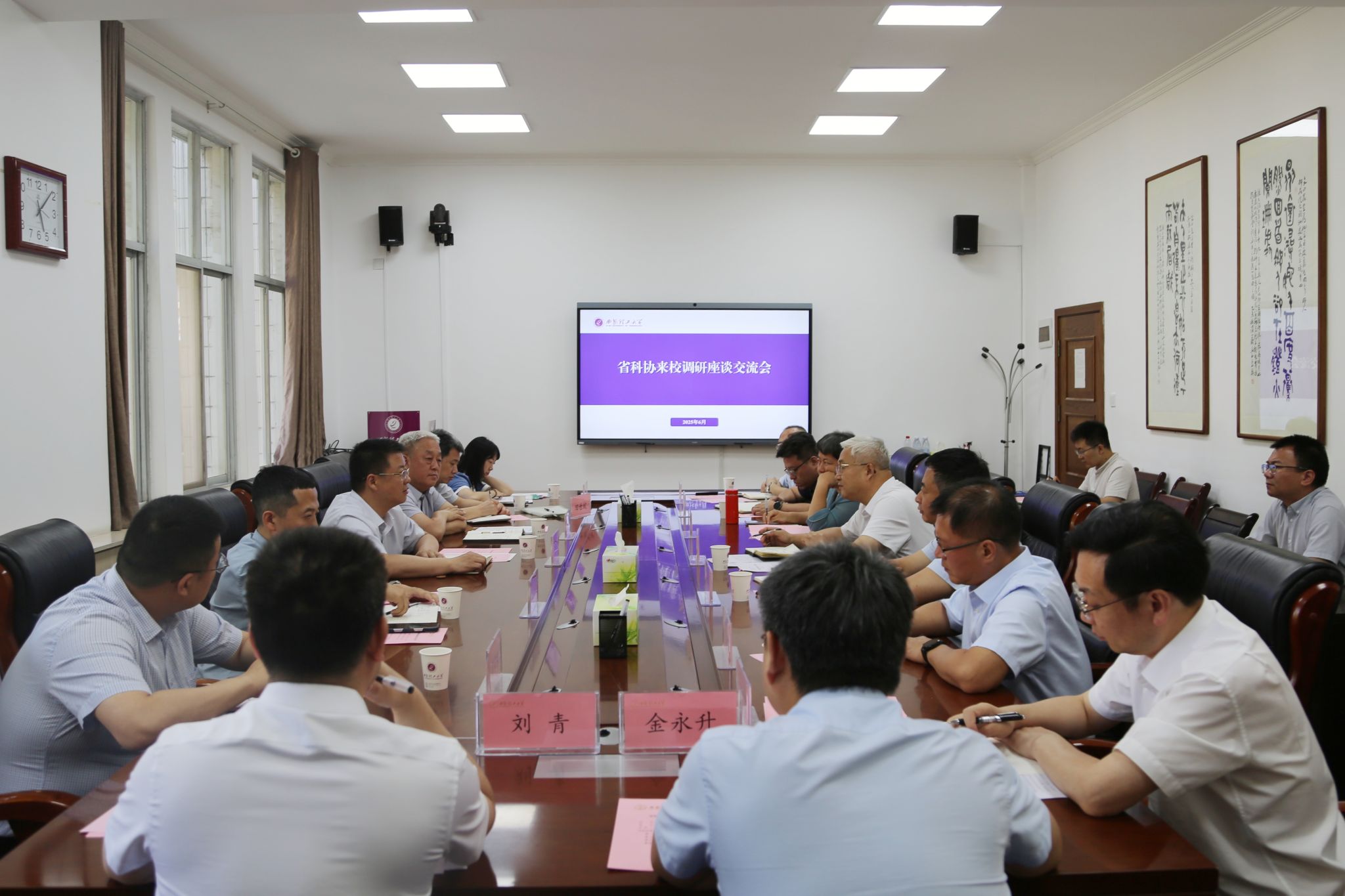 6月16日下午,陕西省科协党组书记李豫琦一行6人来我校调研。省科协党组成员、副主席吕建军,省科协秘书长鲁绪刚及我校党委书记李智军、校长刘云贺、副校长梁淑华参加座谈会,会议由李智军主持。