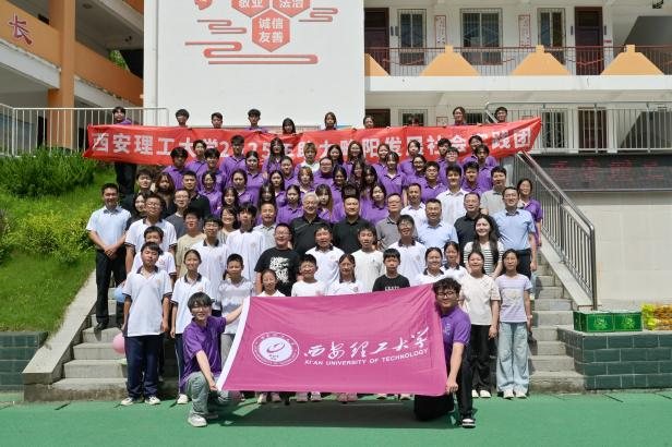 白雀寺镇党委书记邢晓庆、徐家坪镇党委书记崔进、副镇长黄磊、徐家坪初级中学校长陈科平,我校党委办公室、校长办公室,组织部、校团委、印包学院相关负责人以及实践团近60名师生参加活动。