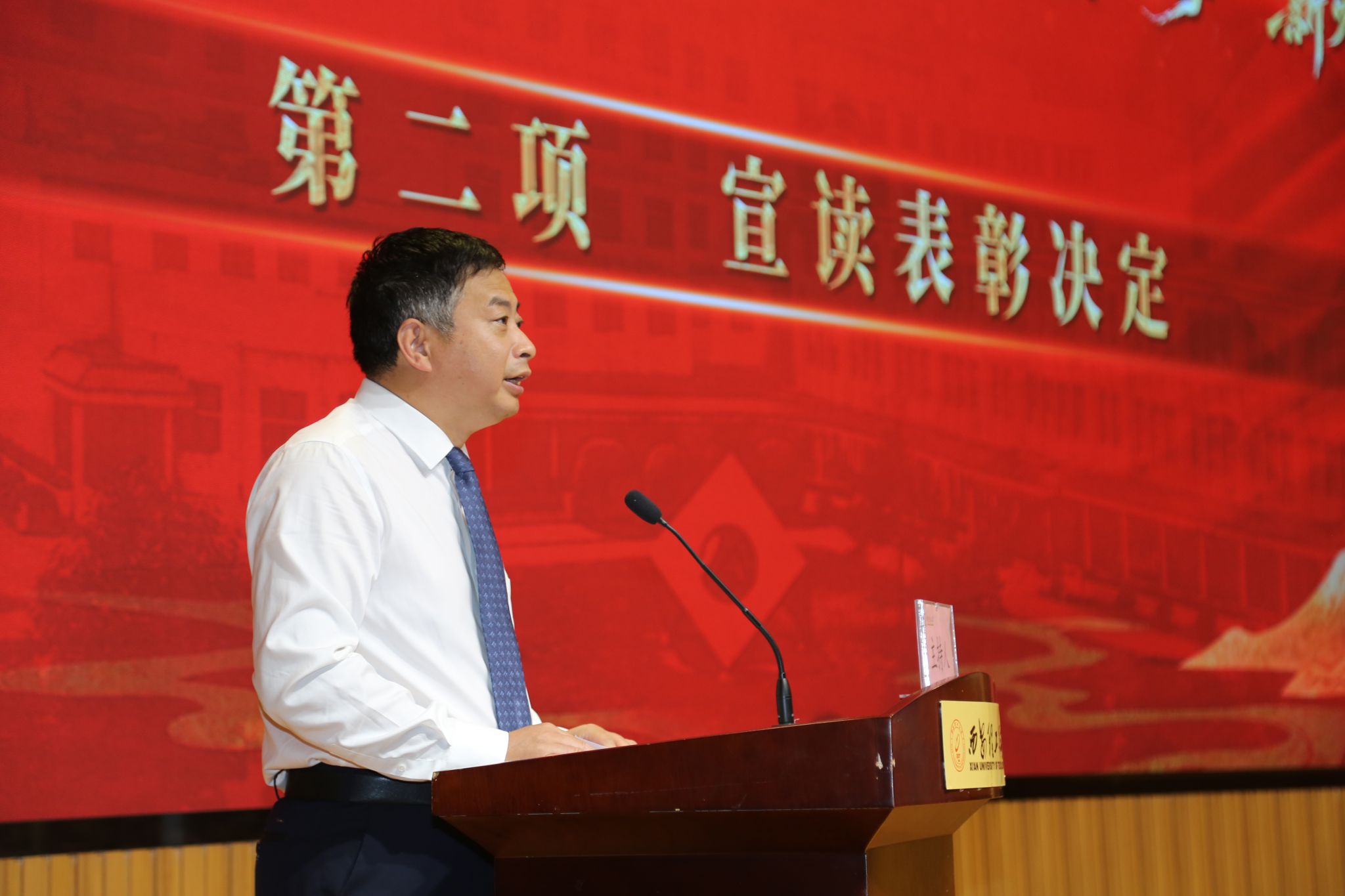 李智军代表学校党委向全校教职员工致以节日的祝福和诚挚的问候,对受到表彰的先进集体和个人表示衷心的祝贺,向全体教职员工一年来的辛勤付出致以由衷的感谢。他指出,过去一年,学校各项工作全面起势,多项成绩在全省高校名列前茅、取得了新的突破,受到了各方的肯定与好评,这些成绩凝聚着全校教职员工的心血和汗水,映衬着每一位教职员工的辛勤付出!他强调,要大力弘扬教育家精神,使其成为广大教育工作者的行为规范,更好地“传道授业解惑”,真正担负起价值传承和发展的使命,肩负起时代赋予的重任;要践行“四有好老师”标准,主动对标“大先生”要求,坚持“四个相统一”,将其内化于心、外化于行,涵养扎实的学识功底和终身学习的态度,以德立身、以德立学、以德施教,成为学生道德修养的楷模;要持续深化师德师风建设,正视问题、查找差距,加强自律自省,以《新时代高校教师职业行为十项准则》为遵循,坚守教育初心、坚持底线思维、常怀敬畏之心,杜绝学术不端与师德失范;要构建全方位、多层次的教师发展支持体系,充分发挥党的领导引领力、考核评价的导向力、服务保障的助推力,促进教师职业成长,打造高素质专业化创新型教师队伍。