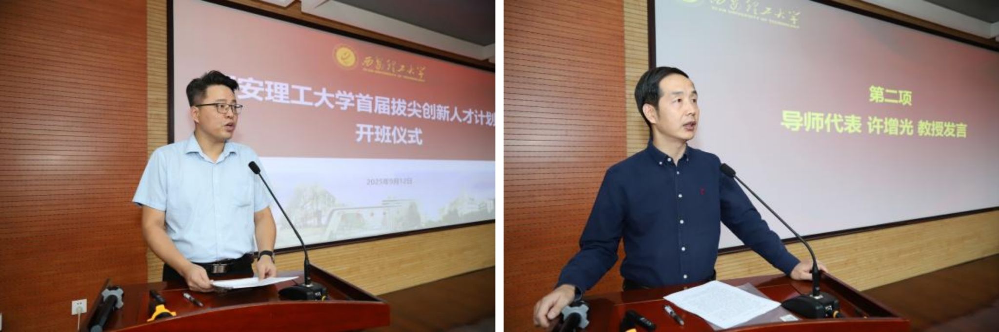 仪式上,汤玉斐以《仰望星空,脚踏实地——成为国家未来战略力量的卓越引领者》为主题,从“国家战略与个人价值、坚实平台与鼎力支持、培养环节与支持政策、动态优化与退出机制”等几方面介绍拔尖创新人才计划实施情况。水利水电学院许增光教授作为学术导师代表发言,表示必将恪尽职守,全力以赴培育拔尖创新人才,不负学校的信任与学生的选择。