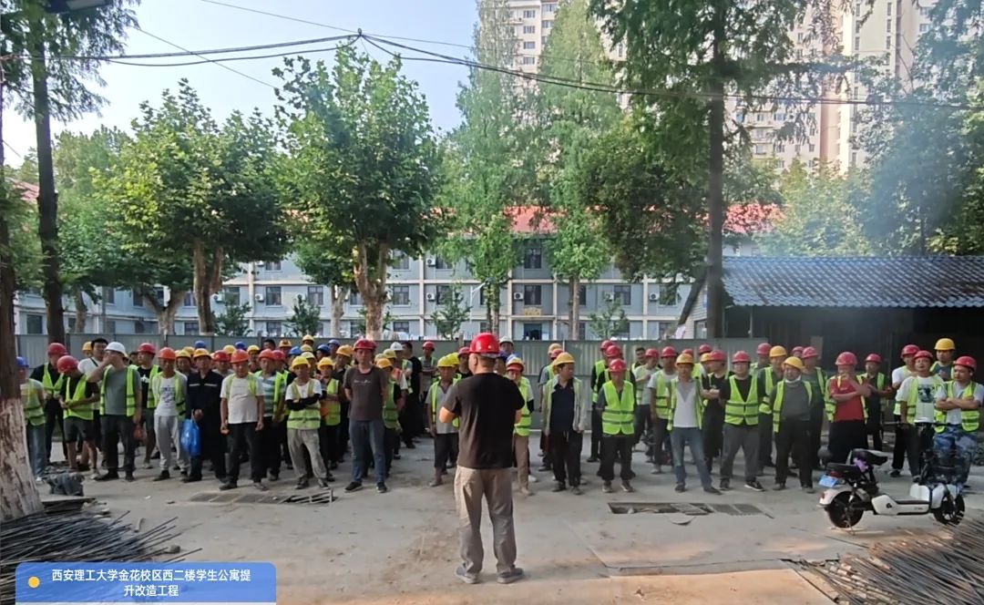 暑期的校园是寂静的,而后勤工作却如火如荼,这是校园环境悄然焕新的“黄金窗口期”。今年,后勤立项18个专项维修改造项目,连同归口管理及同步推进的项目近30项,而西二楼改造是重中之重。5月底施工单位进场,到8月底竣工交付,西二楼项目的施工阶段全部在这个暑期完成,不仅要与时间赛跑,更是与高温较量。而这个夏天是西安人印象里最为炎热、也最为冗长的一个夏天,38度以上的高温天气约25天,40度以上约15天。项目人员一方面督促施工单位落实防暑降温措施,调整工序安排、避免高温时段室外施工,又一方面安排食堂供应充足的绿豆汤。