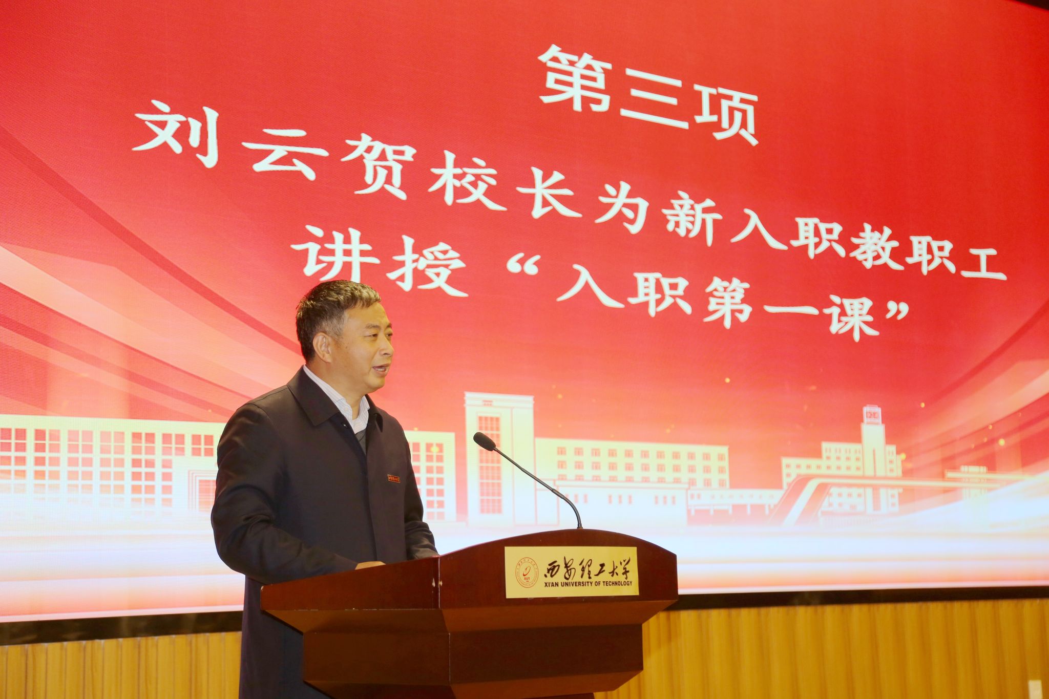 10月17日上午,我校2025年新入职教师岗前培训开班仪式在金花校区图书馆报告厅举行,校长刘云贺出席开班仪式。开班仪式由人事处副处长王伟主持。