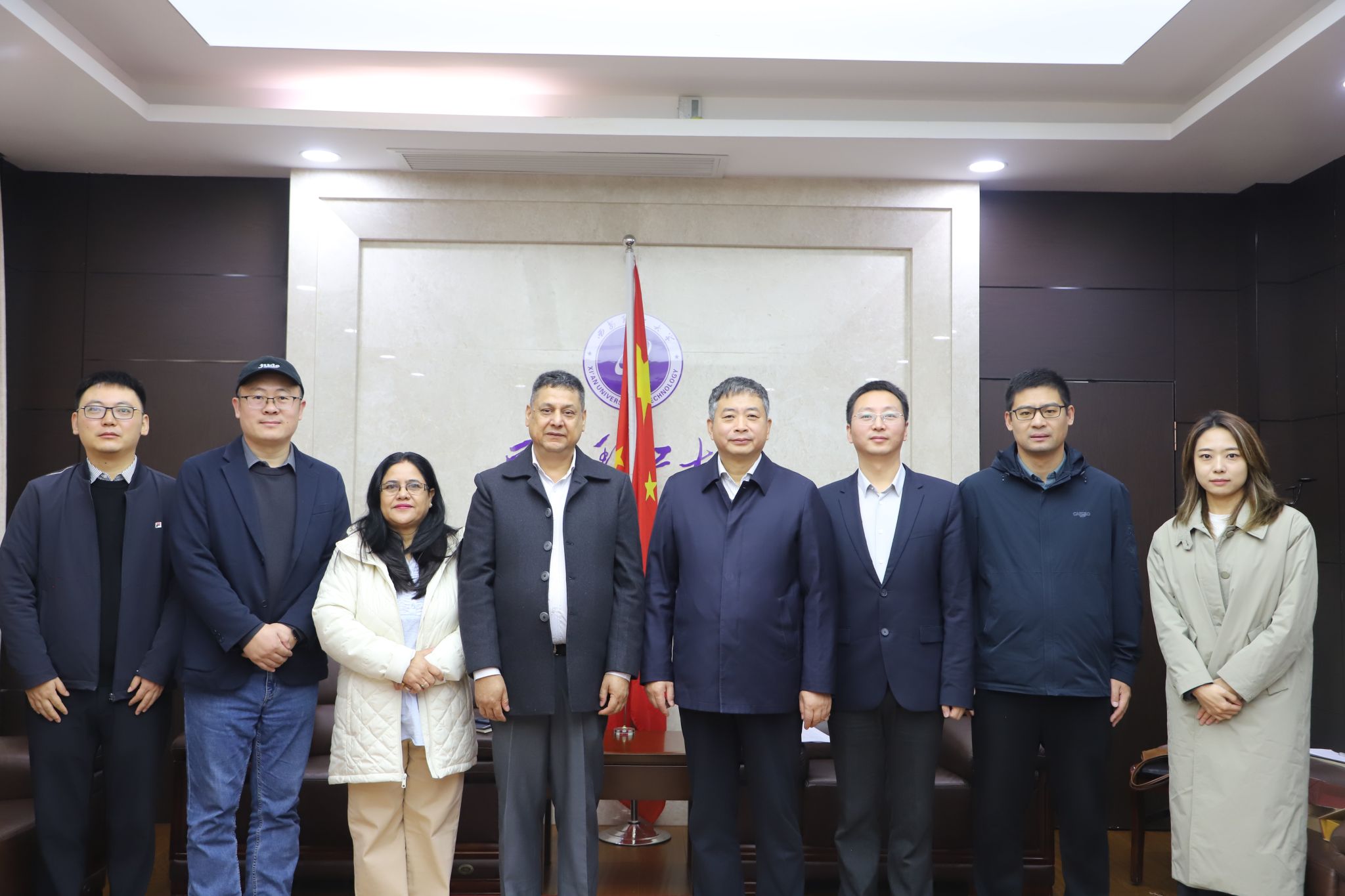 10月25日,尼泊尔特里布文大学校长迪帕克・阿亚尔(Deepak Aryal)一行访问我校。校长刘云贺在第一接待室会见来宾。