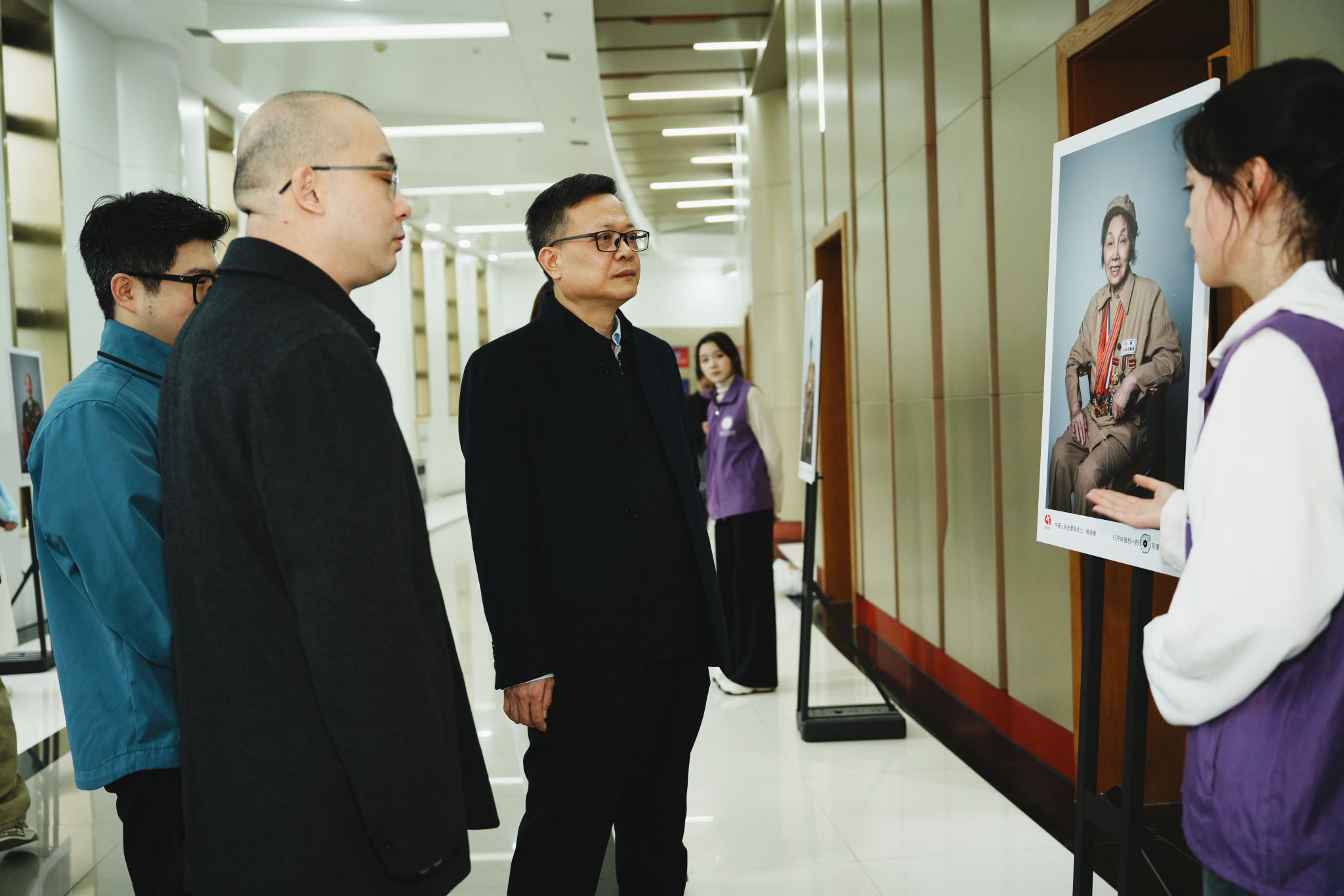 仪式结束后,与会人员集体参观在taptap体育彩票图书馆前举办的“星火传承——中国人民志愿军影像展”。在80余幅志愿军老兵肖像前,taptap体育彩票宣讲团的十余名大学生志愿者,向参观人员讲述着老兵们的英雄事迹,让“不朽”与“青春”在同一时空对话。