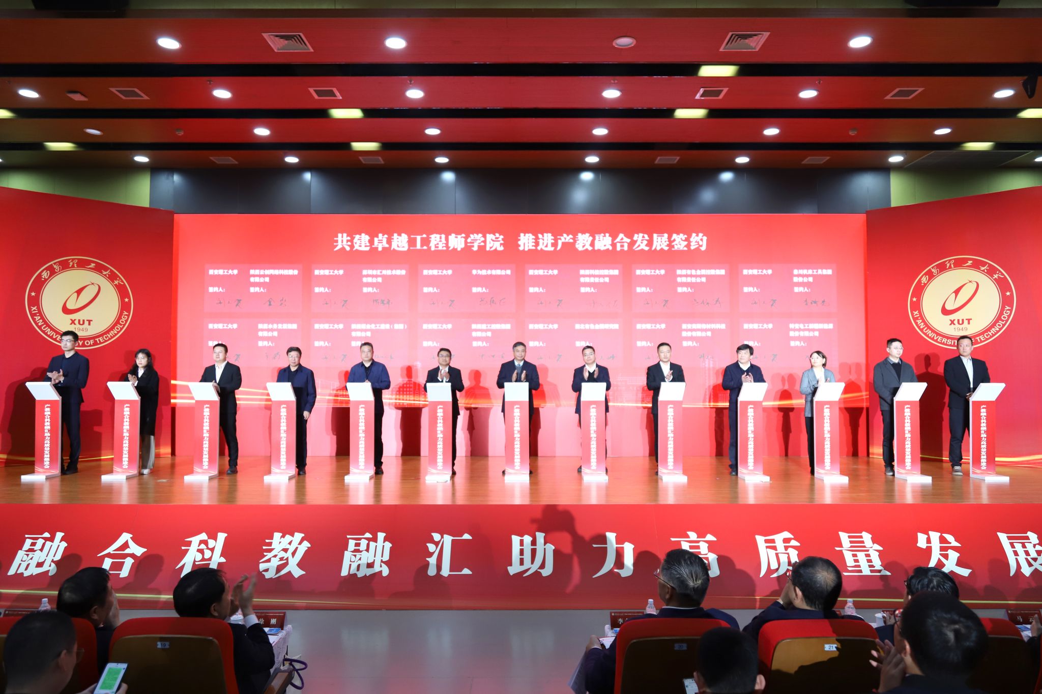 会上,陕西省工业和信息化厅与学校签署战略合作协议。学校牵头组建“陕西省铝镁钼深加工重点产业链和学科链协同创新联盟”,并与36家企业签署共建卓越工程师学院协议。