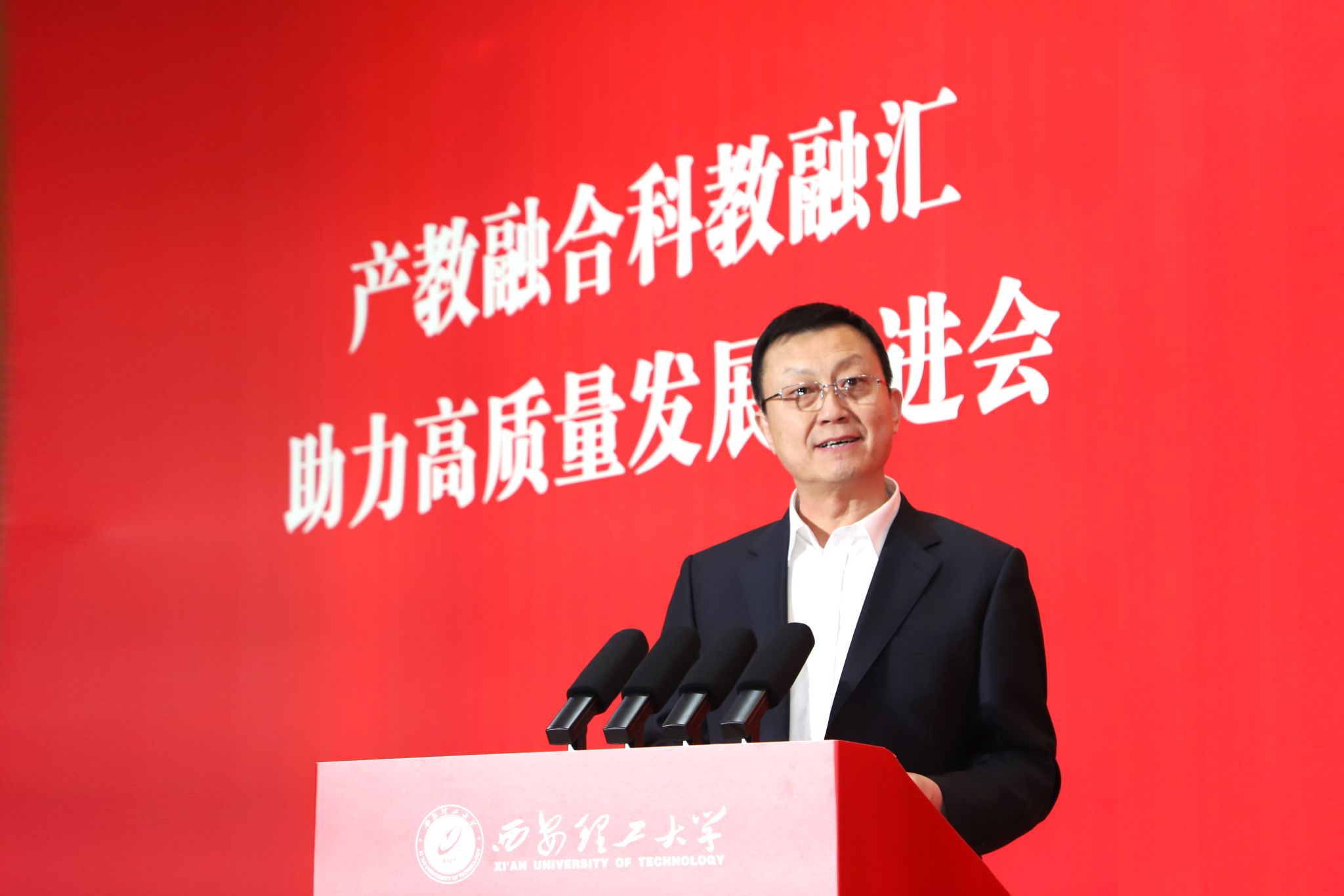 校长刘云贺致欢迎辞,他从办学定位、综合实力、学科专业优势和产教融合成效等方面介绍了学校基本情况。他表示,作为立足西北、服务国家的省属高水平大学,学校始终以优势学科为支撑、以产教融合为路径,在人才培养、科技创新、服务社会等方面形成了鲜明特色与突出优势。此次成立新机构,是学校顺应新时代高等教育变革的务实之举,是推动办学治校向纵深迈进的战略调整,是构建产学研用深度融合的关键支撑。学校将以开放姿态整合优质资源、创新育人模式、加速成果转化、促进“四链”融合,为谱写中国式现代化建设的陕西新篇章注入强劲动能。