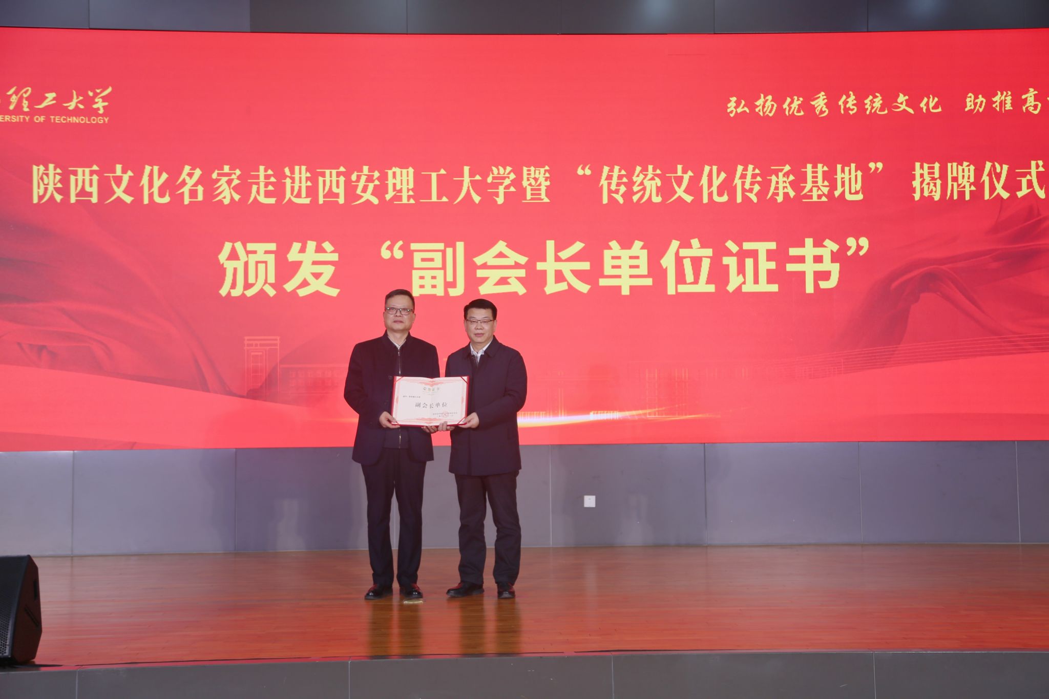 11月12日,我校与陕西省传统文化发展促进会联合主办的陕西文化名家走进taptap体育彩票暨“传统文化传承基地”揭牌仪式在曲江校区举行。