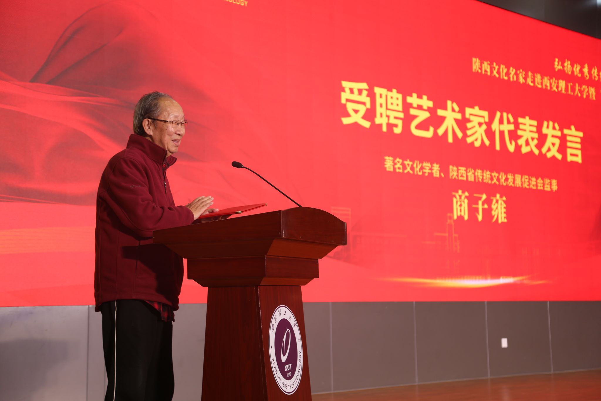 陕西省人大常委会原副主任邓理,陕西省文联副主席、陕西省戏剧家协会名誉主席刘远,著名文化学者、陕西省传统文化发展促进会监事商子雍,陕西广播电视台著名资深节目主持人、陕西省传统文化发展促进会会长陈爱美,中国美术家协会理事、陕西省美术家协会副主席盛沉,西安市书法家协会主席、陕西省传统文化发展促进会副会长石瑞芳,西安广播电视台著名节目主持人、陕西省传统文化发展促进会副会长严一宁,陕西省书法家协会副主席、陕西省传统文化发展促进会书画委副主任雷婉萍,西安美术学院教授、陕西省中国画研究会会长、陕西省传统文化发展促进会书画委副主任李百战,陕西省音乐家协会副主席、西安音乐学院声乐系副主任、著名女高音歌唱家鲜于越歌,陕西书画艺术研究院名誉院长、陕西省书法家协会对外交流委员会副主任张德勇,川剧变脸传承人、陕西省传统文化发展促进会理事刘彬,陕西省传统文化发展促进会秘书长郑欣,陕西省传统文化发展促进会副秘书长王新妮等嘉宾出席活动。我校党委书记李智军、校长刘云贺,校党委副书记马亮、张存库参加活动。