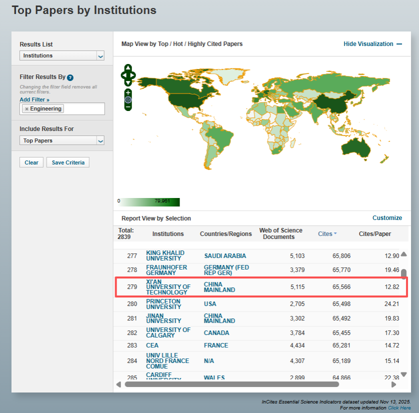 据科睿唯安2025年11月更新的ESI统计数据显示,我校工程学学科首次进入ESI全球前1‰,标志着taptap体育彩票工程学学科已迈入国际领先学科行列,实现了历史性跨越。本期ESI统计数据覆盖时间范围内,我校工程学学科位于ESI全球0.983‰,发文量为5115篇,总被引频次65566次。截至目前,我校已有工程学、材料科学、环境/生态学、计算机科学、化学、农业科学、地球科学等7个学科位列ESI全球学科排名前1%。