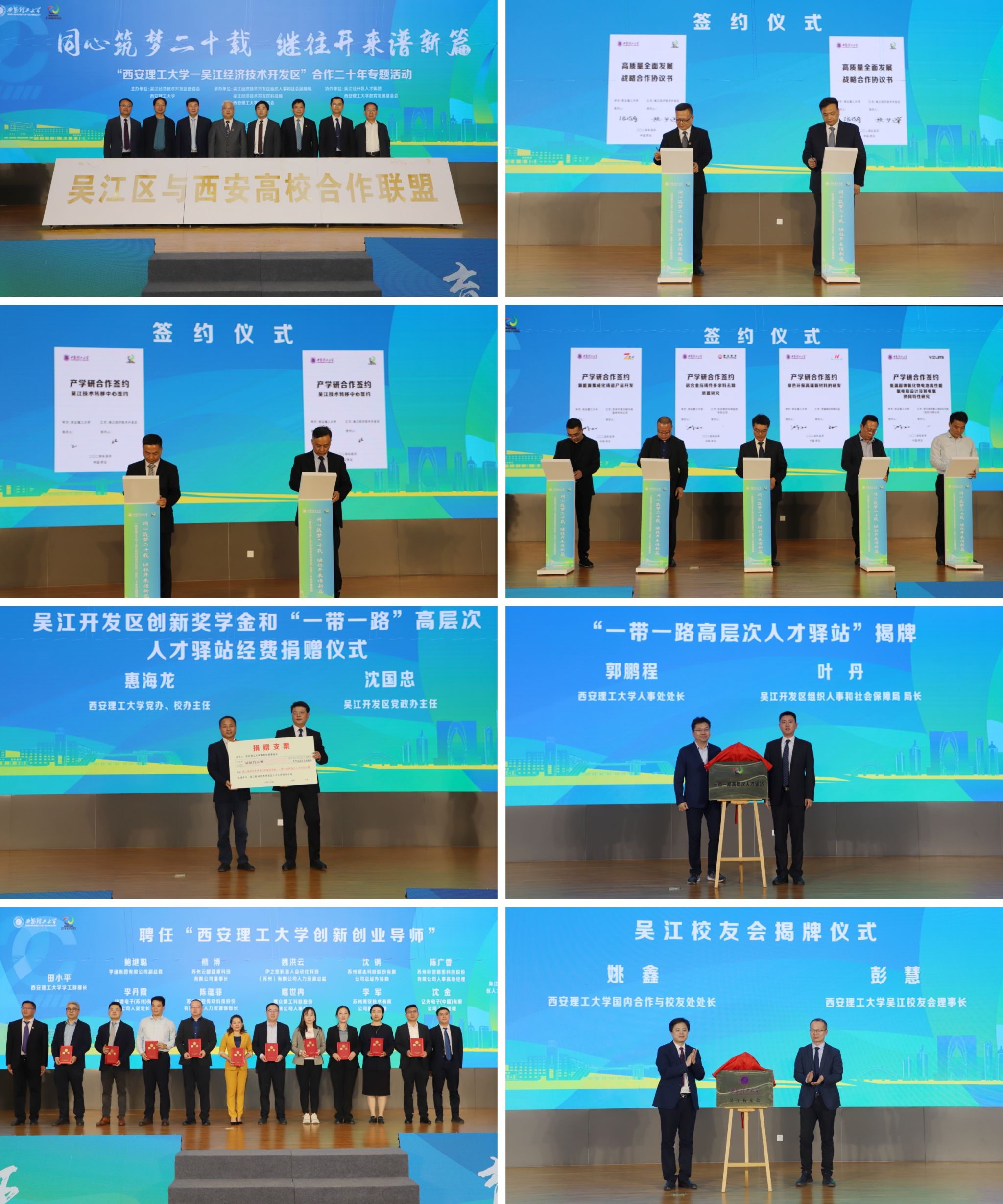 会上,双方签订了校地战略合作协议,举行了taptap体育彩票吴江技术转移中心签约仪式、校企产学研合作项目集中签约仪式、吴江开发区创新奖学金和“一带一路”高层次人才驿站经费捐赠仪式,为吴江经济技术开发区“一带一路”高层次人才驿站揭牌,对taptap体育彩票创新创业导师进行聘任,成立了taptap体育彩票吴江校友会、吴江区与西安高校合作联盟。
