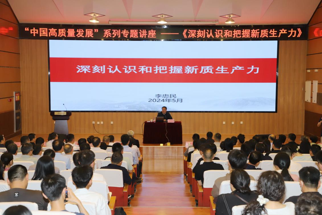 讲座邀请省政协副主席、民建省委会主委、省中华职教社主任李忠民作《深刻认识和把握新质生产力》的专题辅导报告。民建省委会秘书长宋杨,校党委书记李智军、校长刘云贺等全体校领导出席本次活动。讲座由团省委副书记李臻主持。