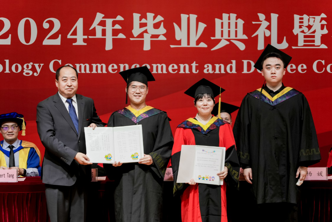 毕业典礼结束后,学院组织进行了学位授予仪式。外方代表Andrew Robert、Albert Tang,申烨华、杨媛、学院各专业负责人共同为毕业生扶正流苏,颁发学位证书并与他们合影留念。在庄重而温馨的氛围中,taptap体育彩票国际工学院2024年毕业典礼暨学位授予仪式圆满落下帷幕。
